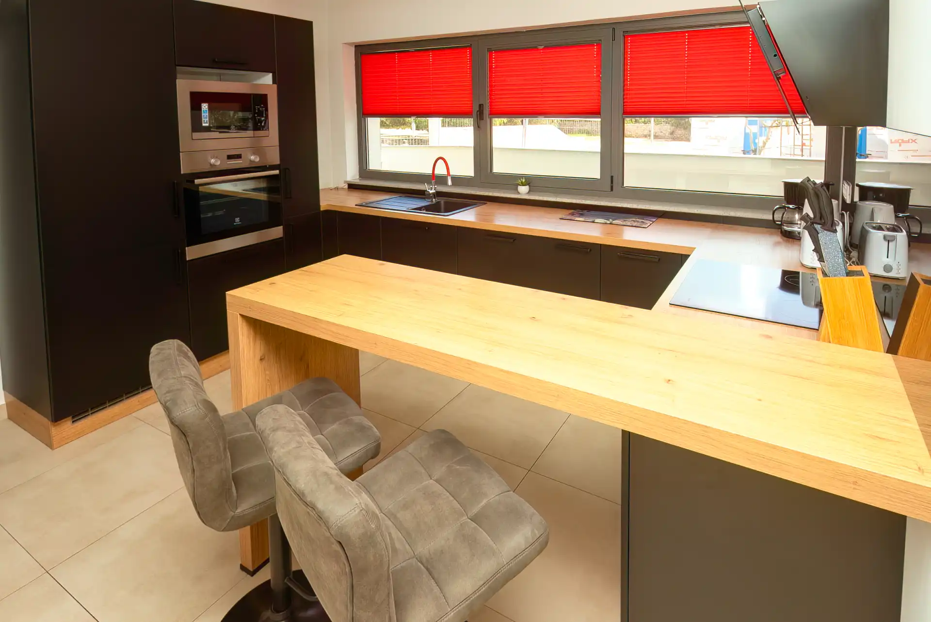 - Offene Küche mit Profi-Ausstattung (Geschirrspüler, Mikrowelle, Tiefkühler)
