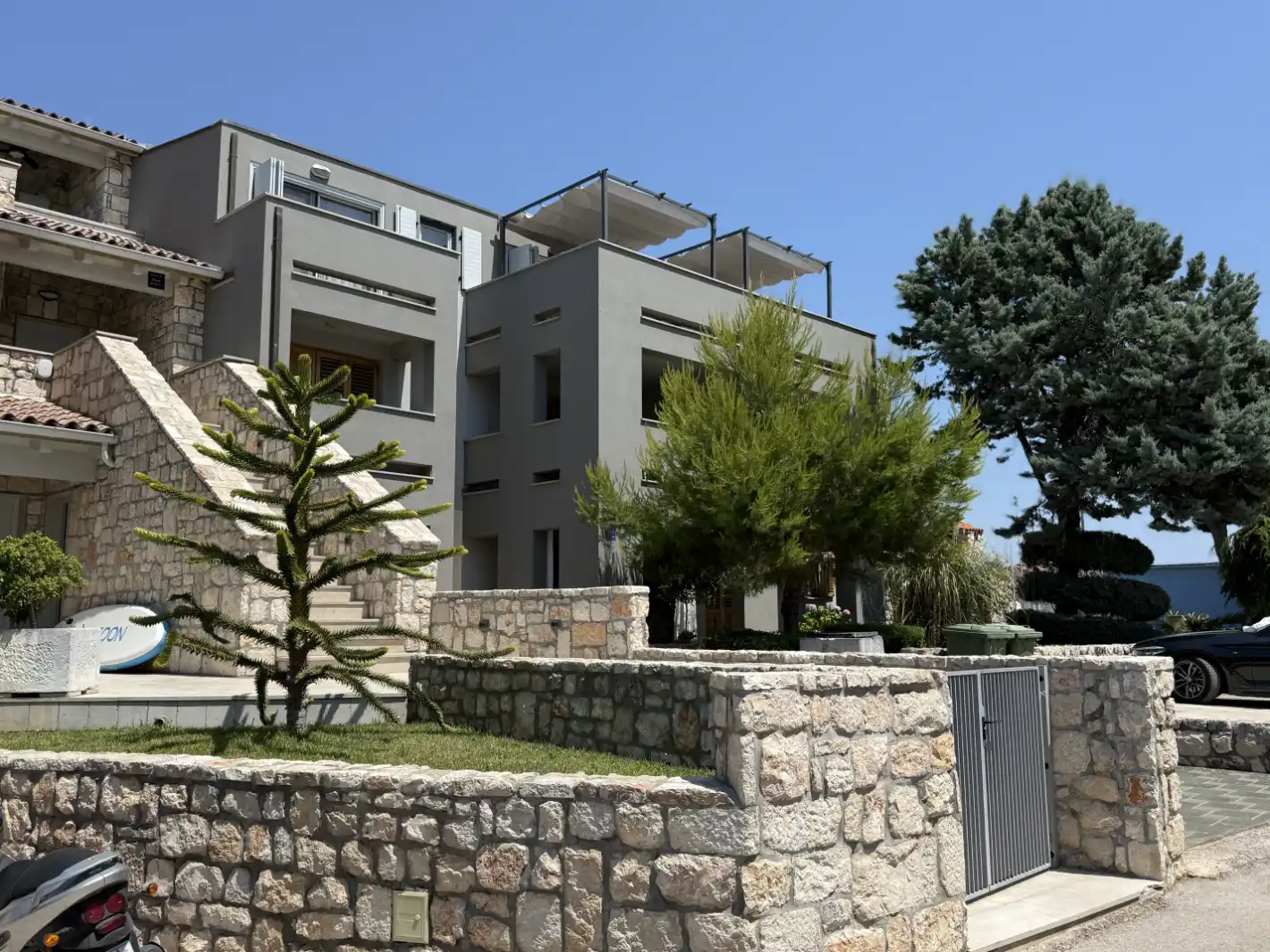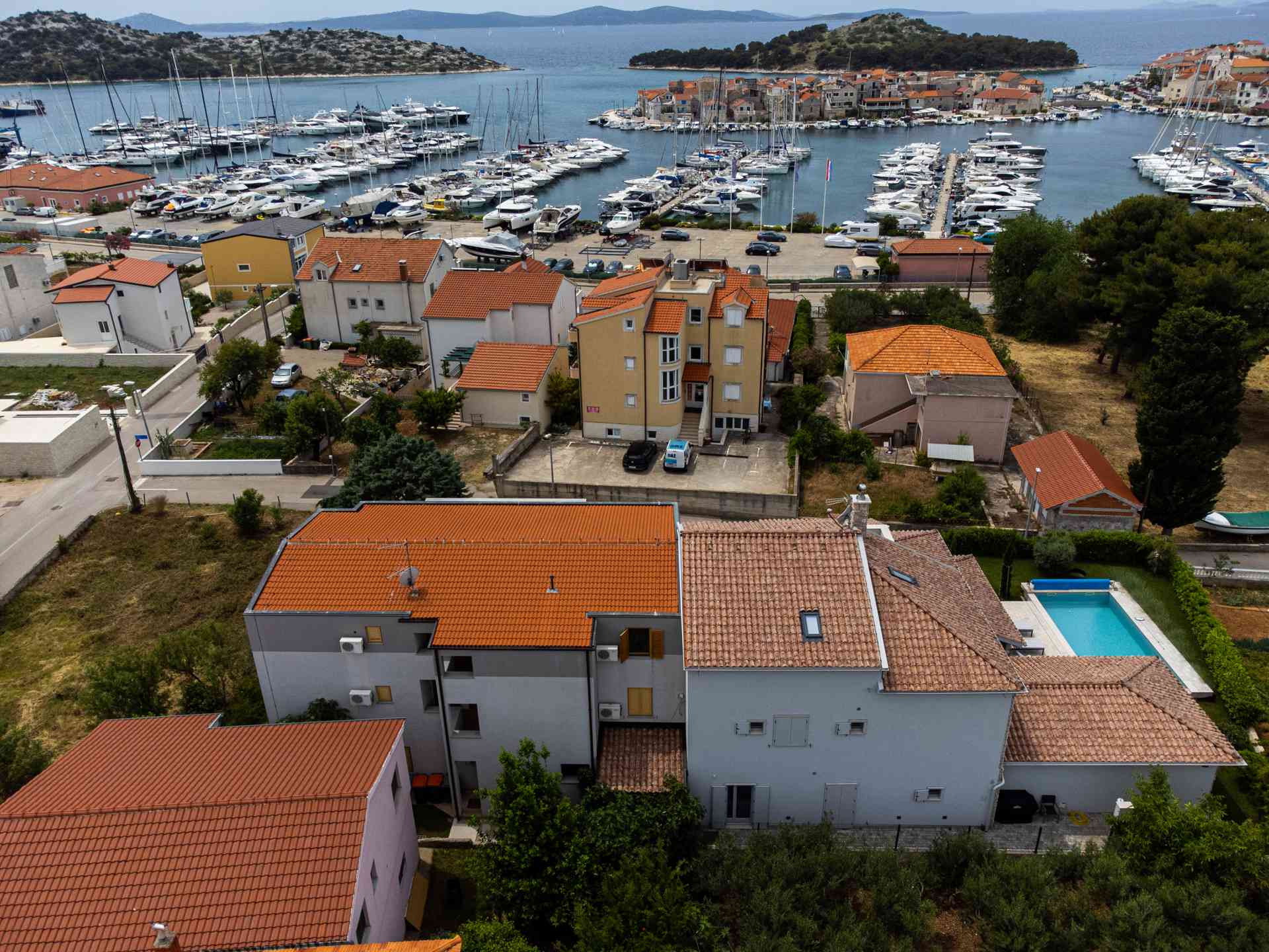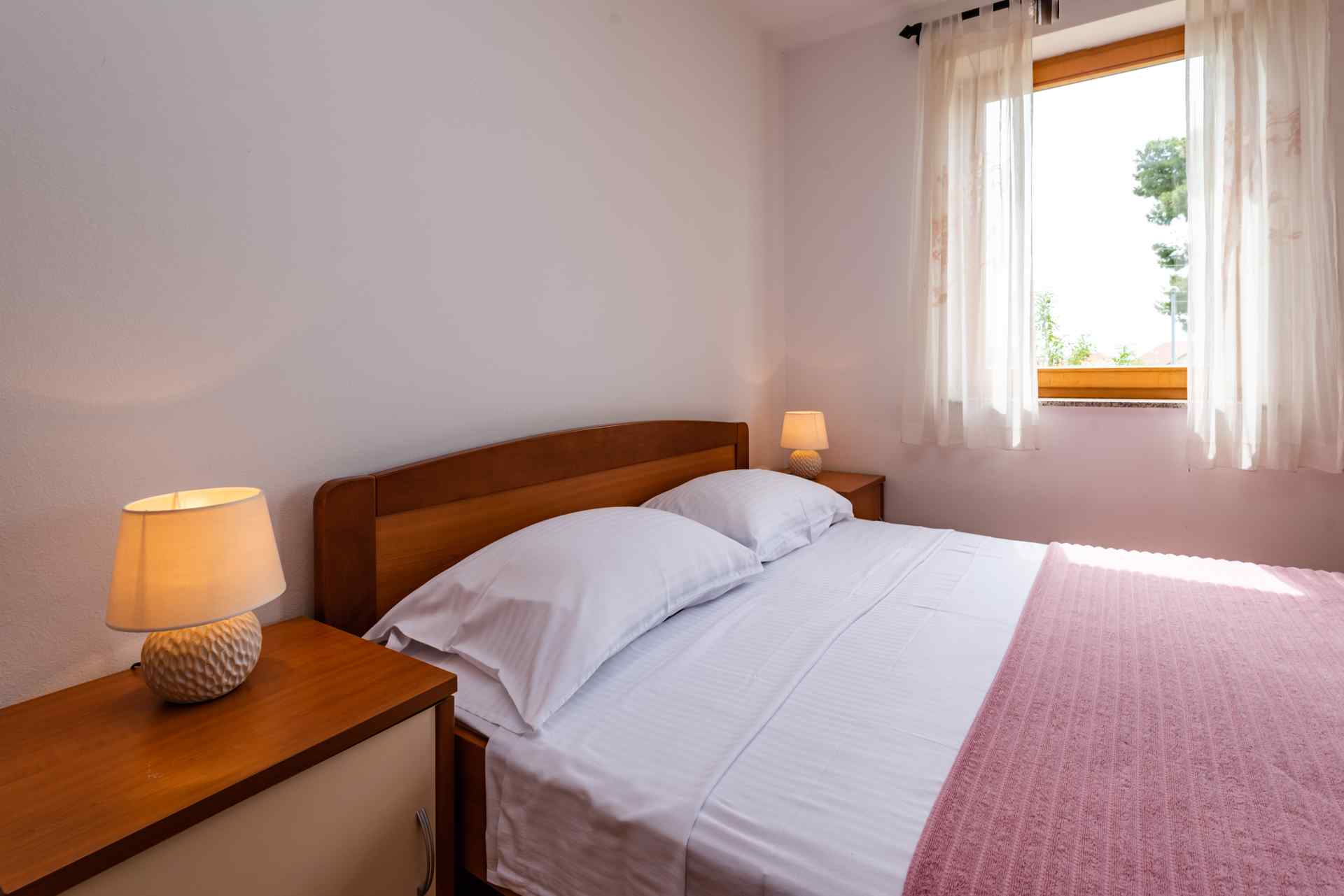 Ferienwohnung Smiljanic A2: Ein modernes Ferienapartmenthaus in erstklassiger, friedvoller Lage erwartet dich. Ihr Auto parken Sie bequem direkt vor der Tür, die Marina ist nur einen Katzensprung entfernt und der nächstgelegene Strand befindet sich in geringer Distanz, gerade mal 200 Meter.