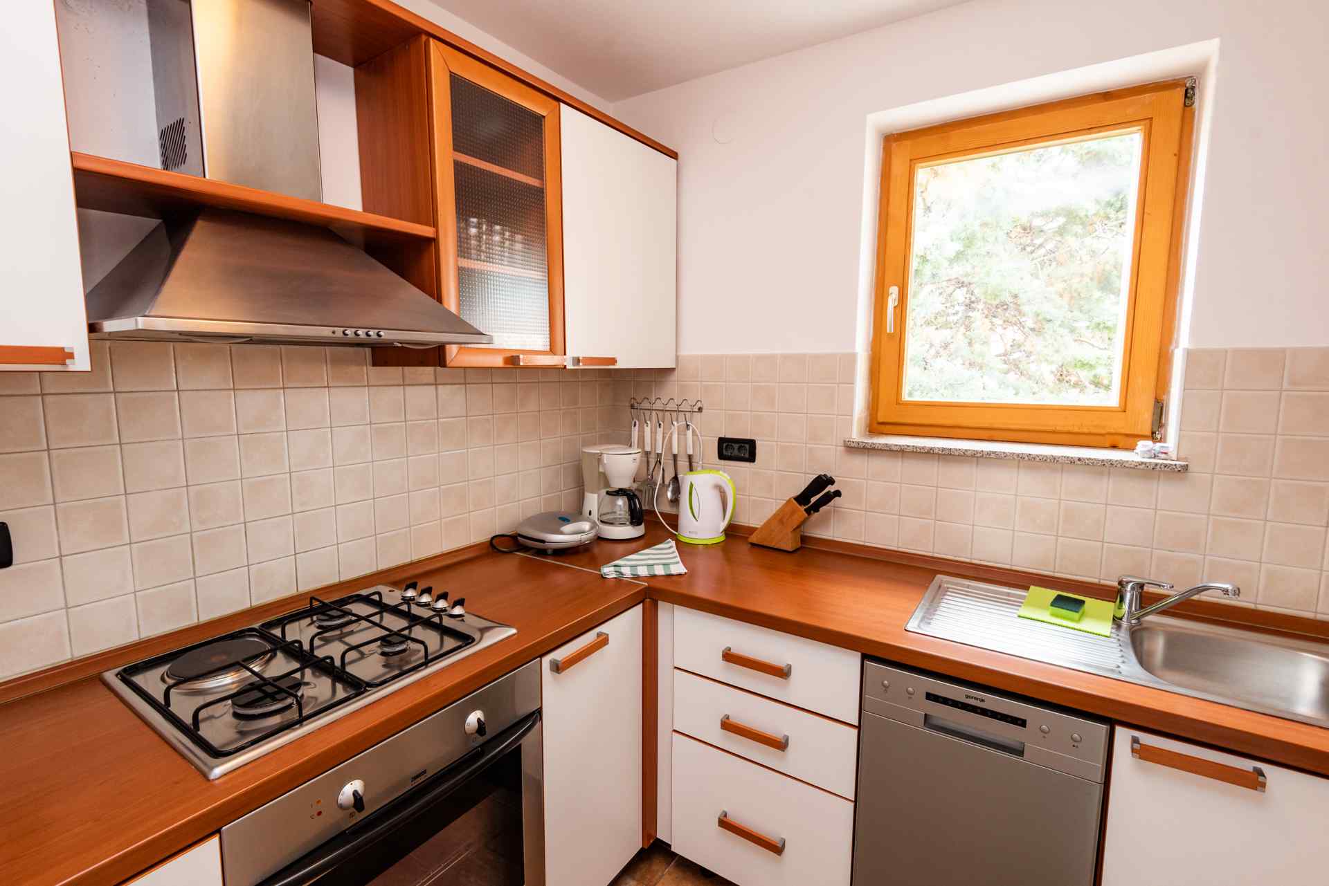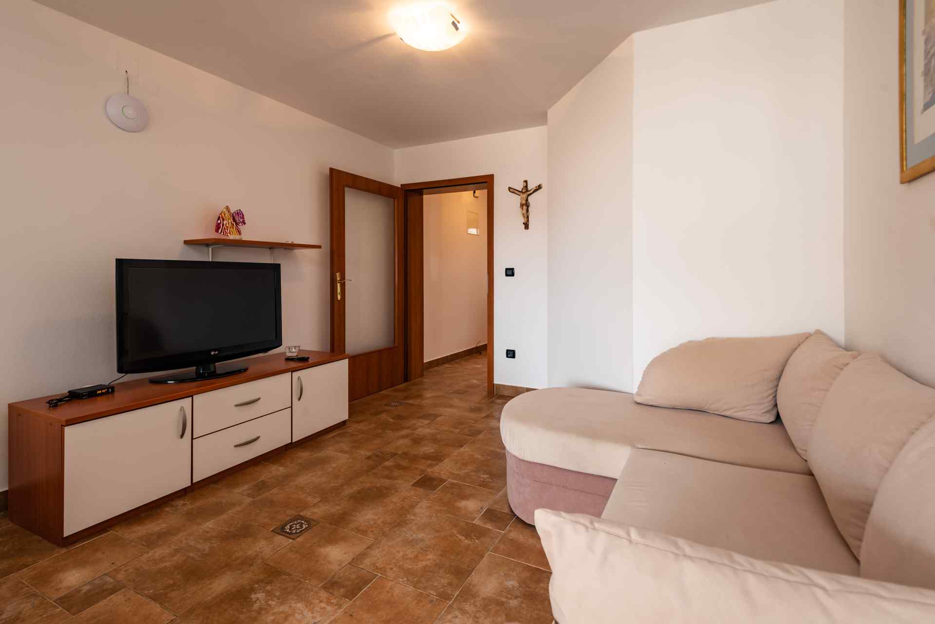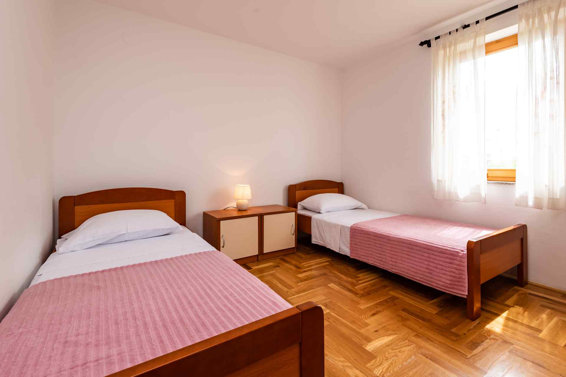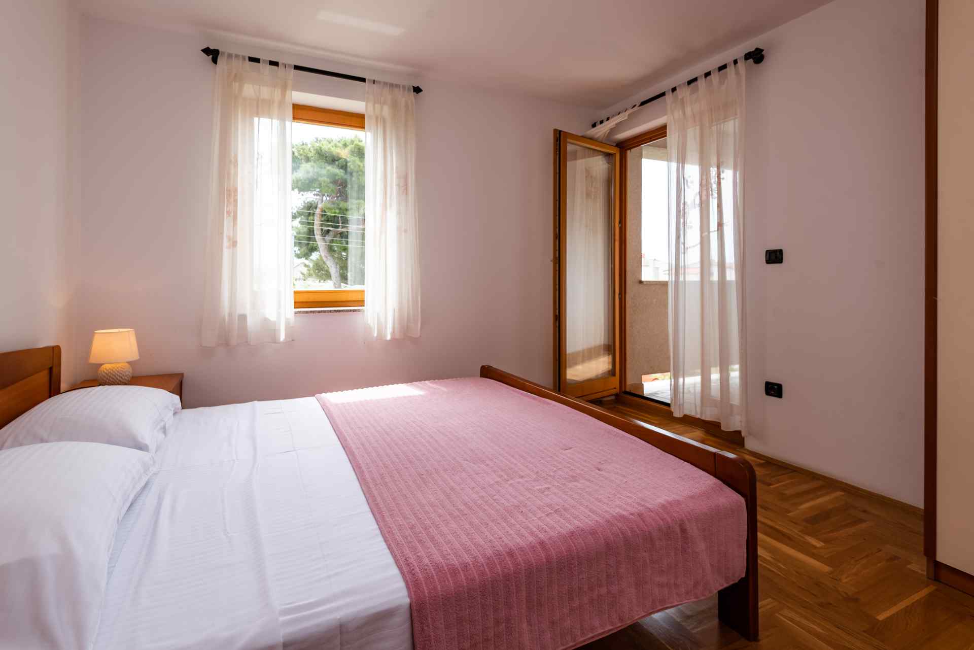 Ferienwohnung Smiljanic A2: Ein modernes Ferienapartmenthaus in erstklassiger, friedvoller Lage erwartet dich. Ihr Auto parken Sie bequem direkt vor der Tür, die Marina ist nur einen Katzensprung entfernt und der nächstgelegene Strand befindet sich in geringer Distanz, gerade mal 200 Meter.