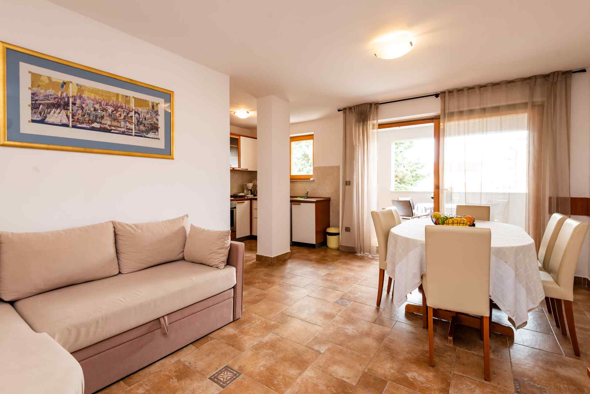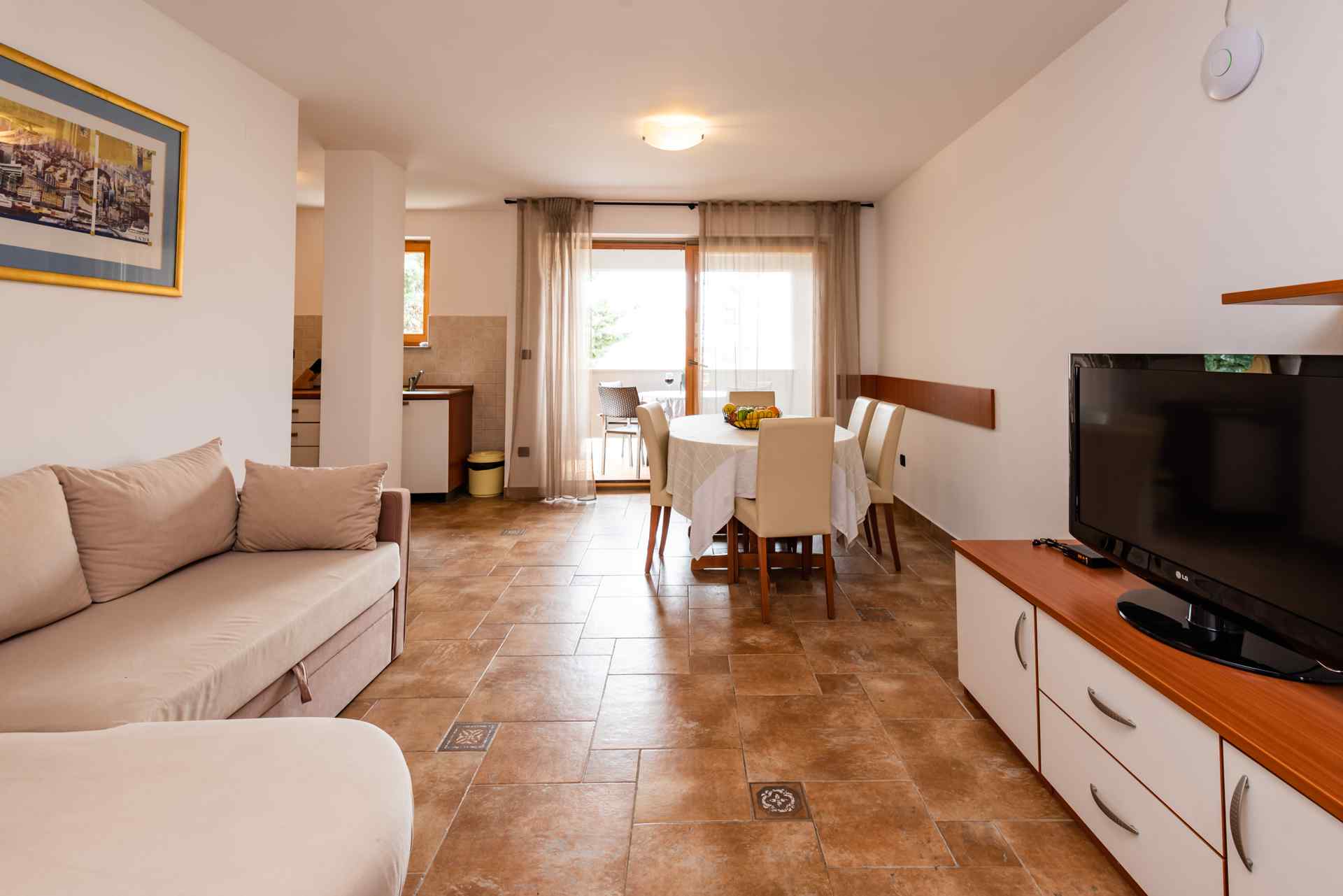 Das Restaurant Tople liegt so günstig, dass man sich abends schnell ein erfrischendes Bier oder ein Glas Wein auf die Terrasse holen kann, oder man entscheidet sich dafür, den Tag im gemütlichen Gastgarten des Restaurants ausklingen zu lassen. Zusammengefasst handelt es sich hier um ein Top-Apartment, die ohne Vorbehalte zu empfehlen ist!