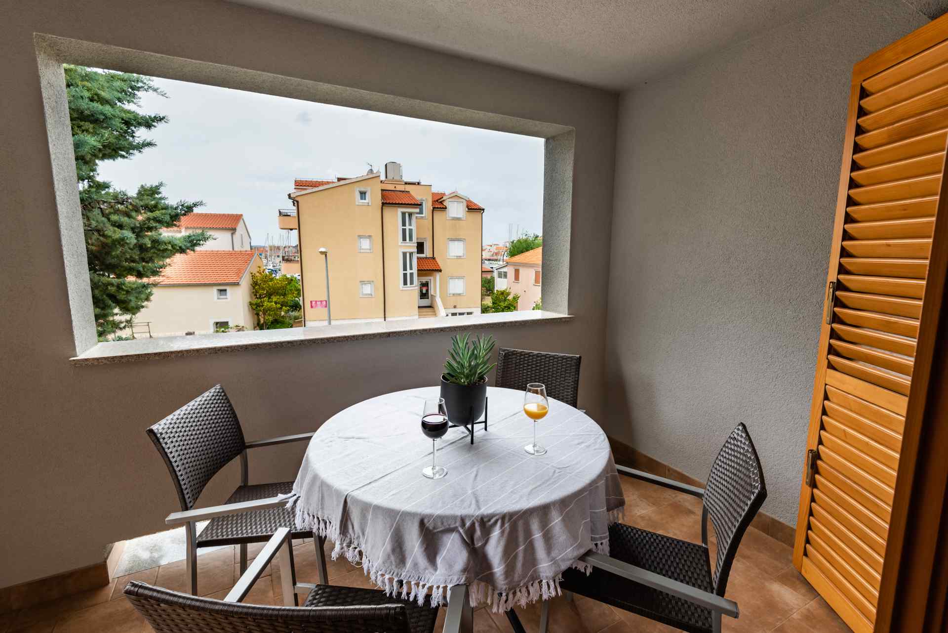 Die vier Ferienapartments A1, A2, A3 und A4 im Haus Smiljanic unterscheiden sich lediglich minimal in ihrer Grundrissaufteilung, die aufgrund architektonischer Gegebenheiten variiert. Ihre Entscheidung könnte darauf basieren, ob Sie lieber unter einem sternenklaren Himmel auf Ihrer Terrasse sitzen oder es vorziehen, im kühlen Schatten zu entspannen.