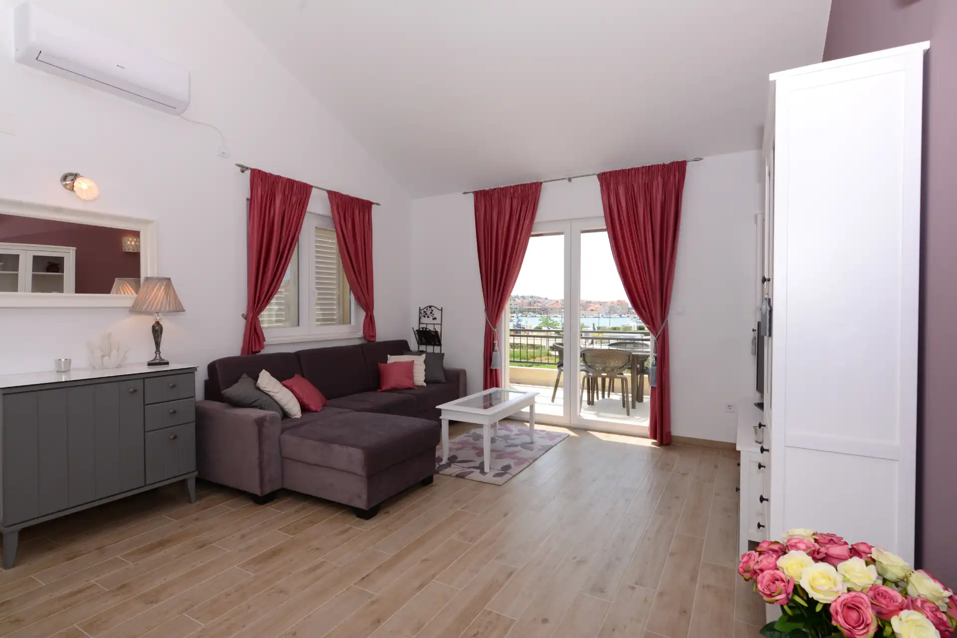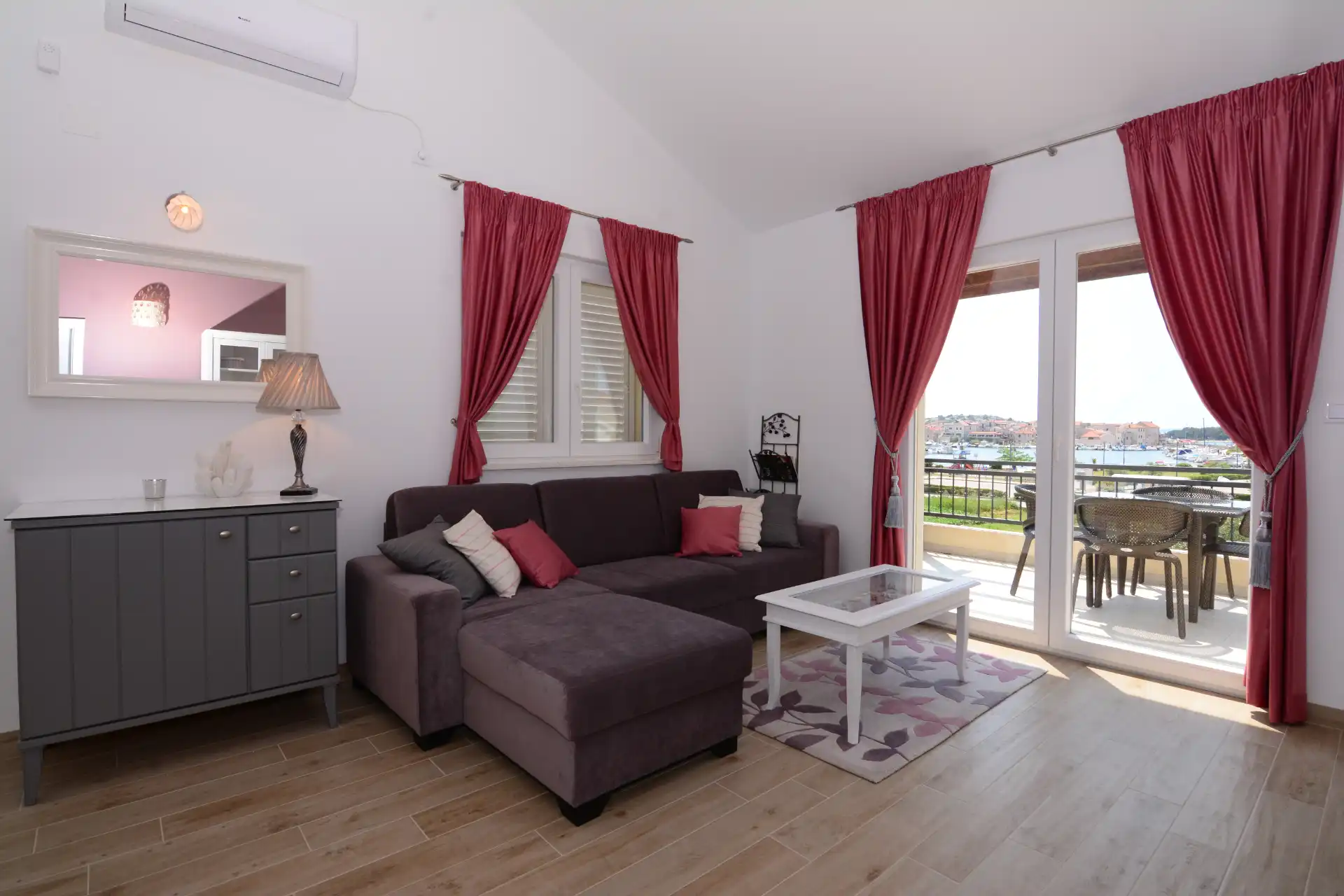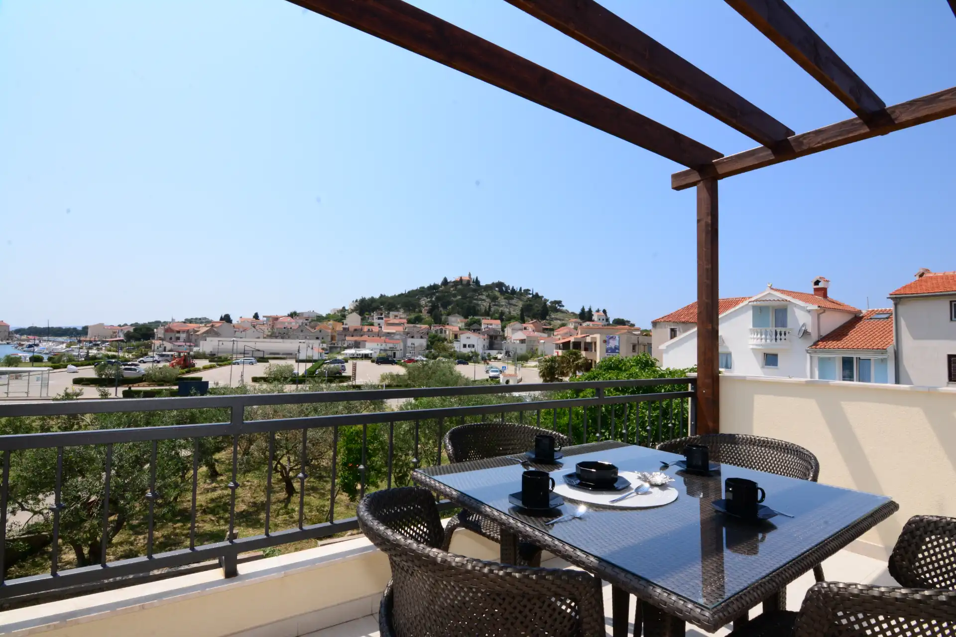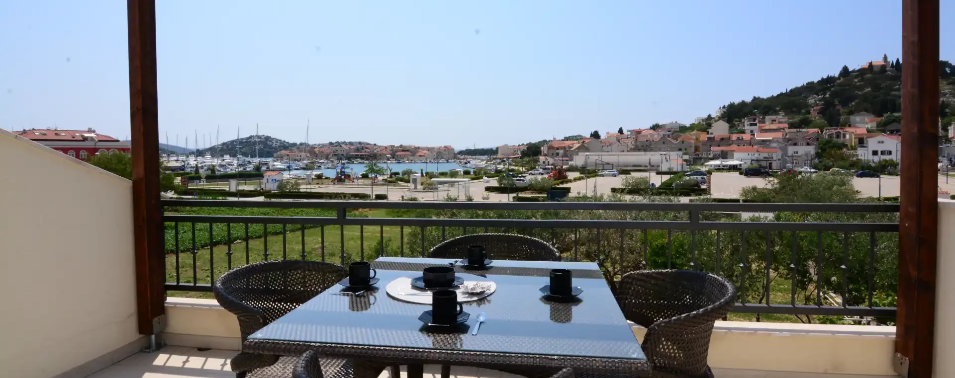 FeWo mit Boot Kroatien – bietet das Apartment „Nadoveza“ im 1. OG in Tribunj und liegt 300 m vom Yachthafen Tribunj mit Blick auf den Stadthafen, Altstadt und zur Marina von Tribunj.