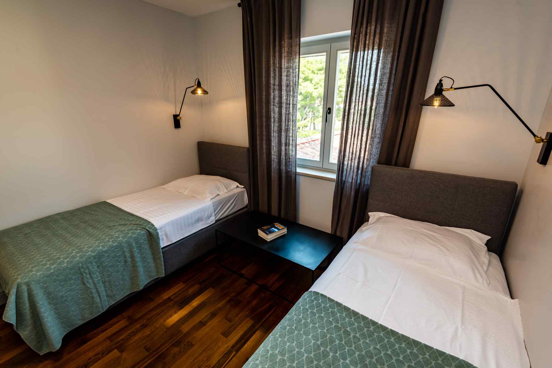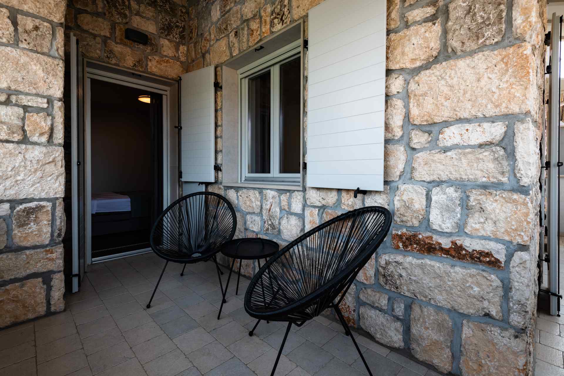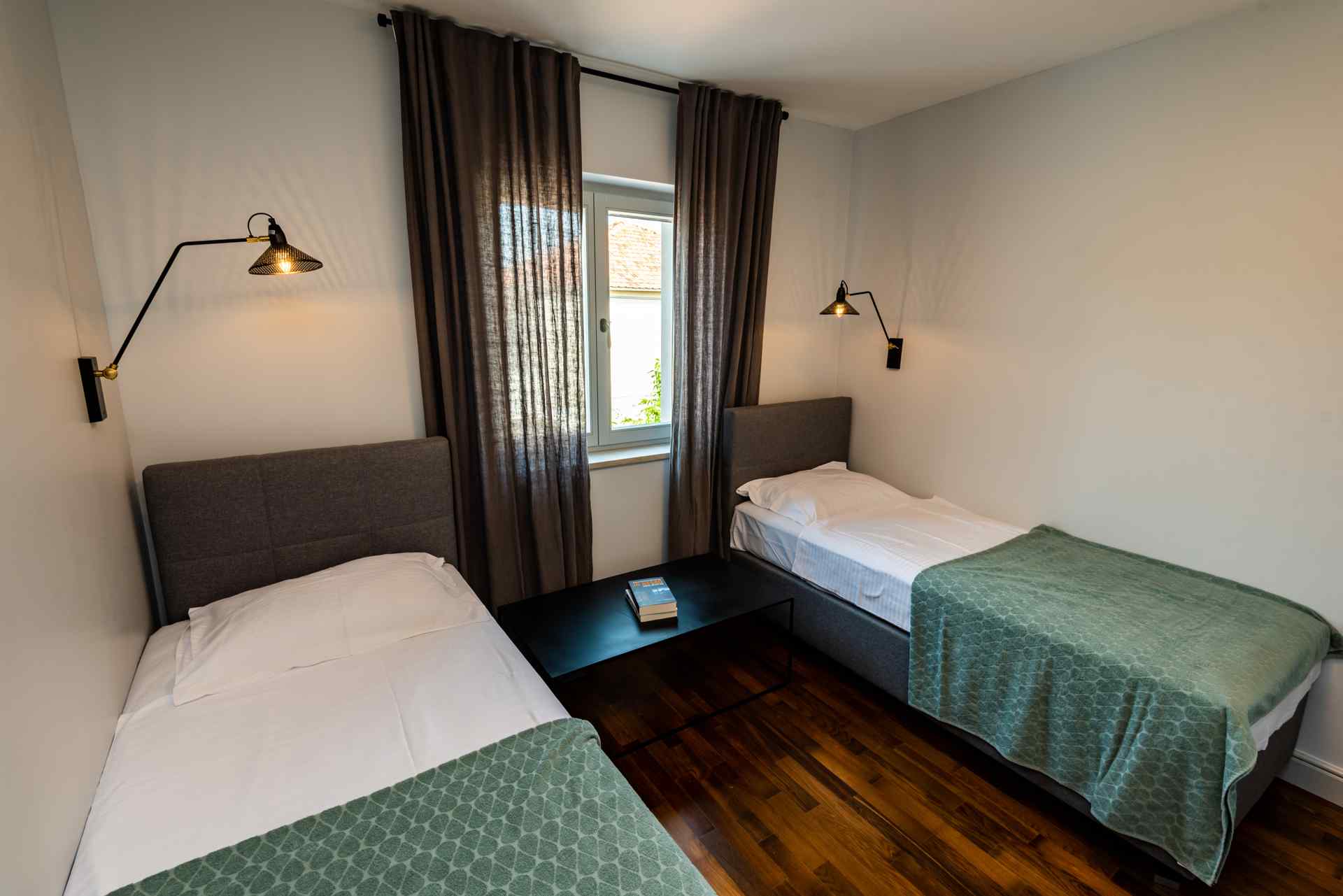 Das Apartment Stone House A2 geht über zwei Stockwerke und ist mit zwei Badezimmer und auch durch die räumliche Trennung, konzipiert auch für zwei Paare.