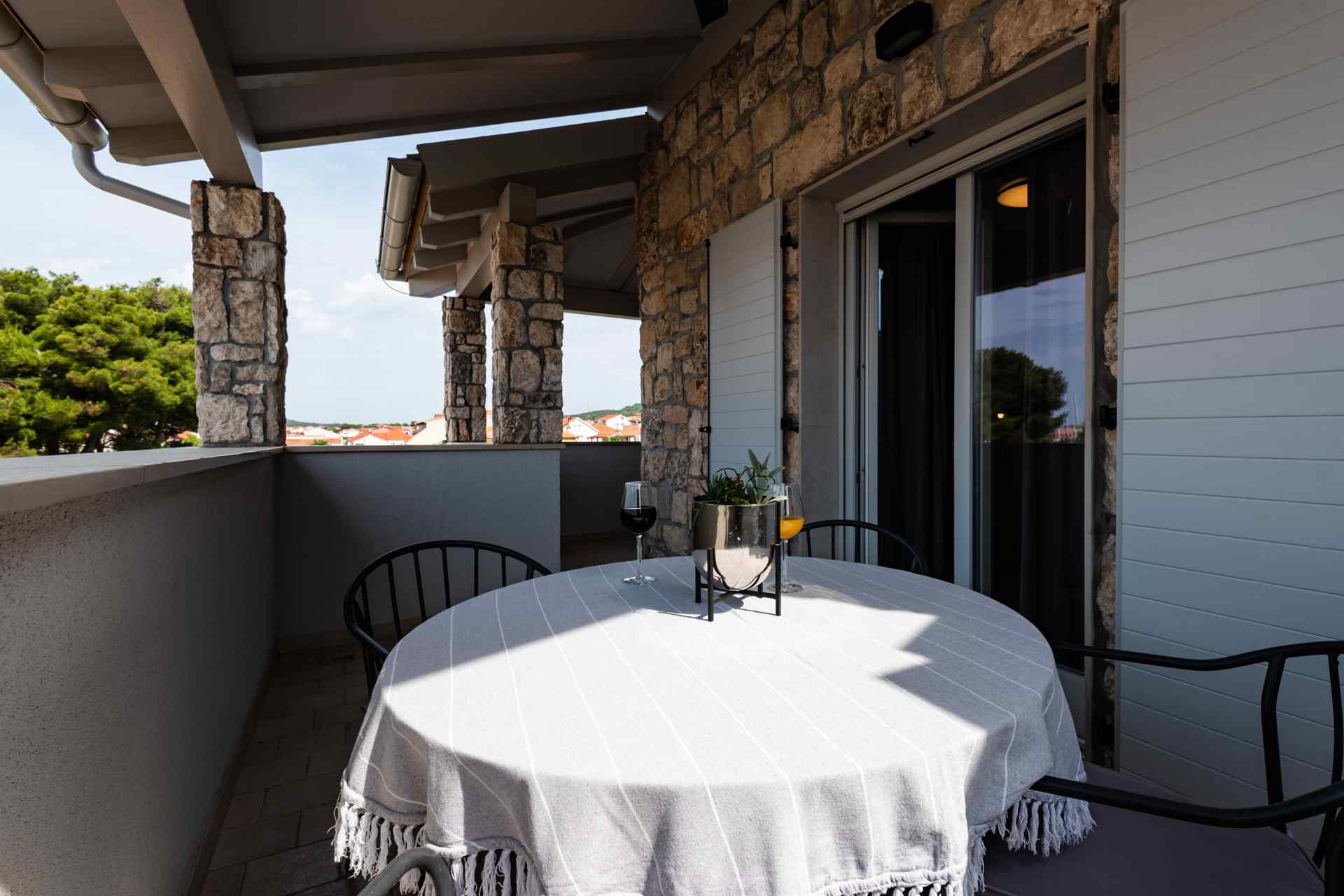 Mit viel Liebe zum Detail wurde dieses Anwesen Stone House Smiljanic in Tribunj im Stile der alten dalmatinischen Steinhäuser erbaut. Die Lage ist perfekt: 50 Meter zur Marina, 200 Meter zum Strand und 300 Meter ins Zentrum von Tribunj. Der Marinawirt „Tople“ ist 40 Meter entfernt, mehrere Einkaufsmöglichkeiten sind im Umkreis von 150 Meter.