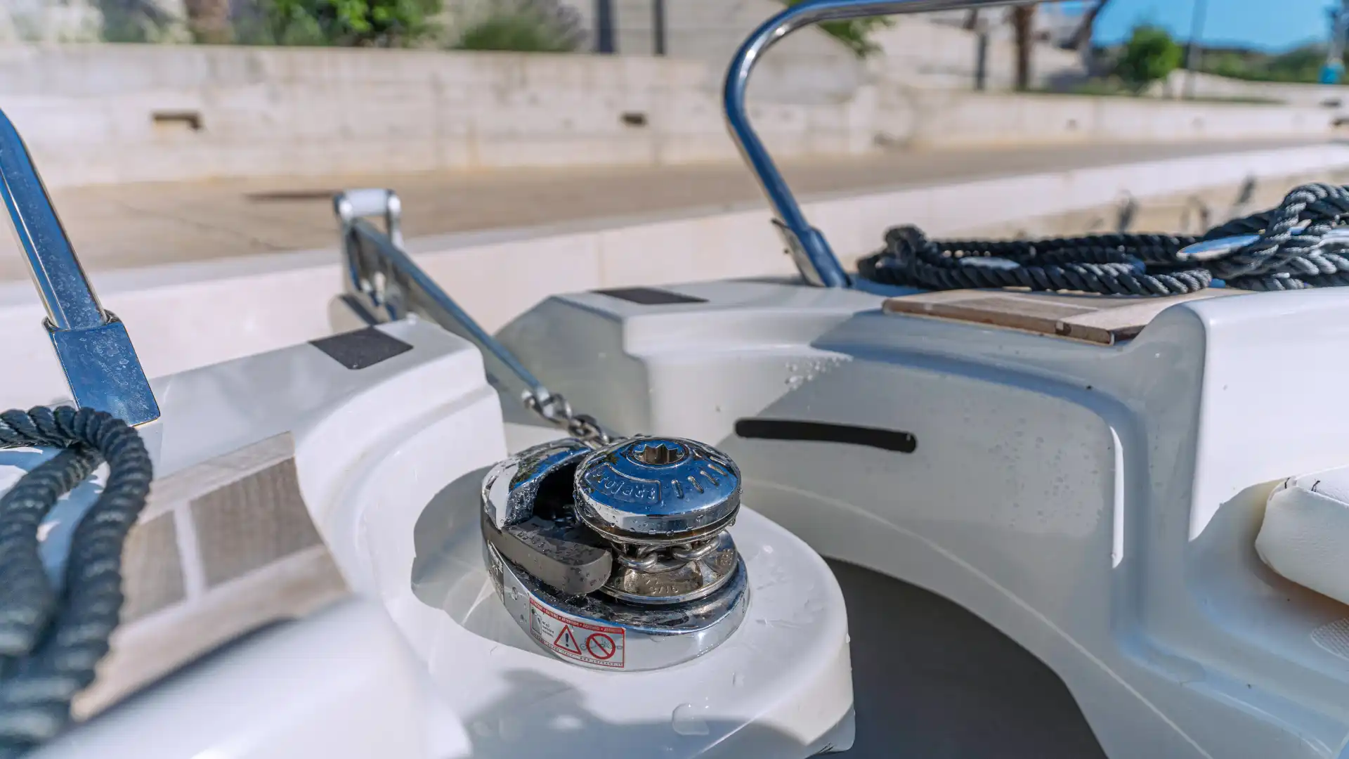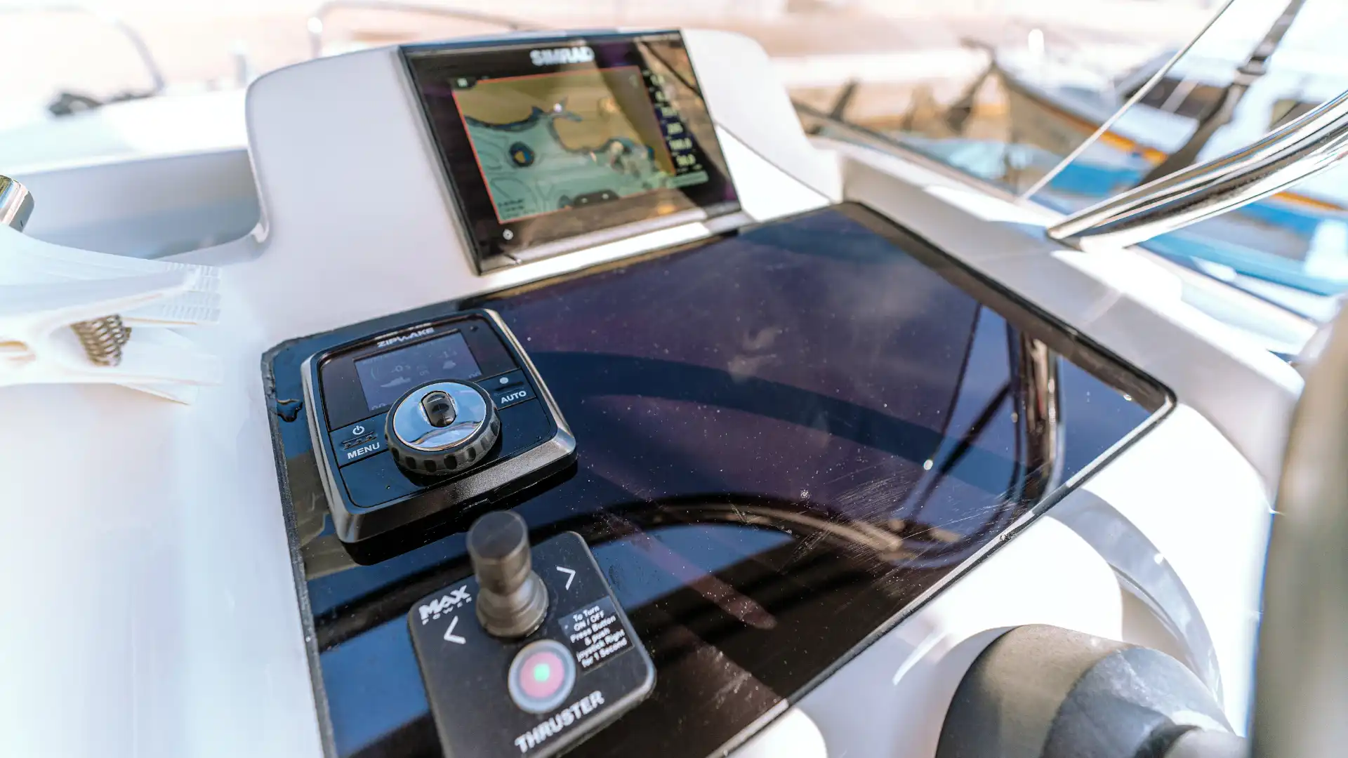 Elektrische Ankerwinde mit Ankerkette 30m, Bugstrahlruder - Bow thruster, ZIPWAKE – dynamische Trimm-Steuerungssystem, Druckwasser Anlage, Batterie-Hauptschalter, 2 Batterien Service + Motor