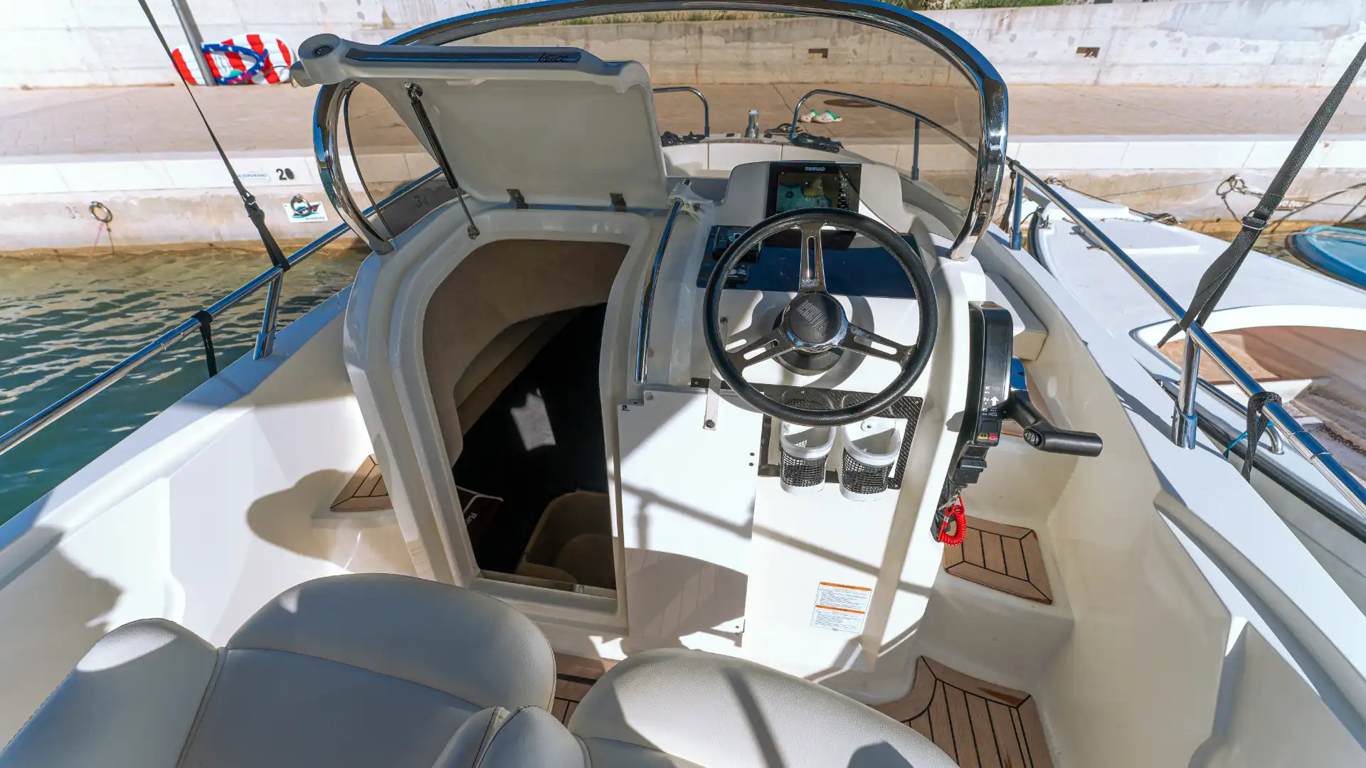 Ein besonderes Highlight der Sessa K6 ist der elektrische Bugstrahlruder / Bowthruster was das manövrieren und das an und ablegen für Hobby Skipper zum Kinderspiel macht. Durch die Schlupfkabine steht auch der einen oder anderen Übernachtung an Board nichts mehr im Wege.