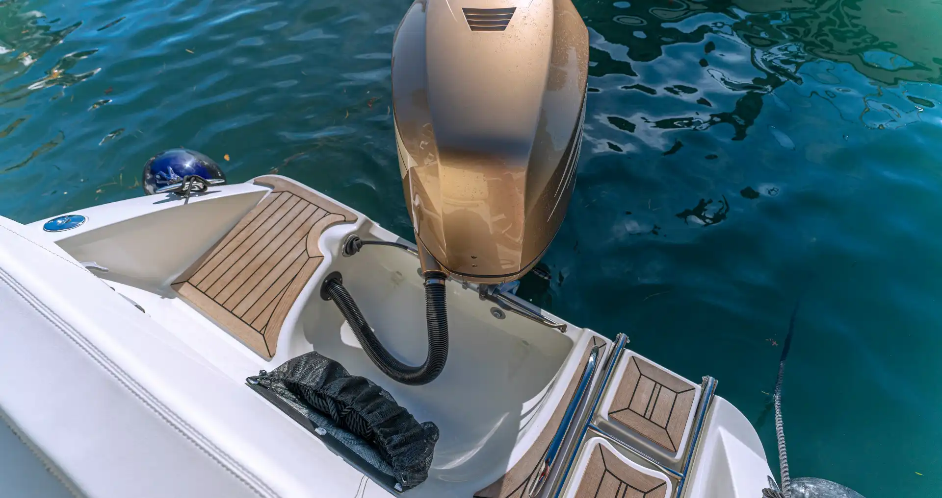 Süßwasser Heckdusche, 6 Fender, Bootshacken, Badeleiter, Sonnenpolster am Bug