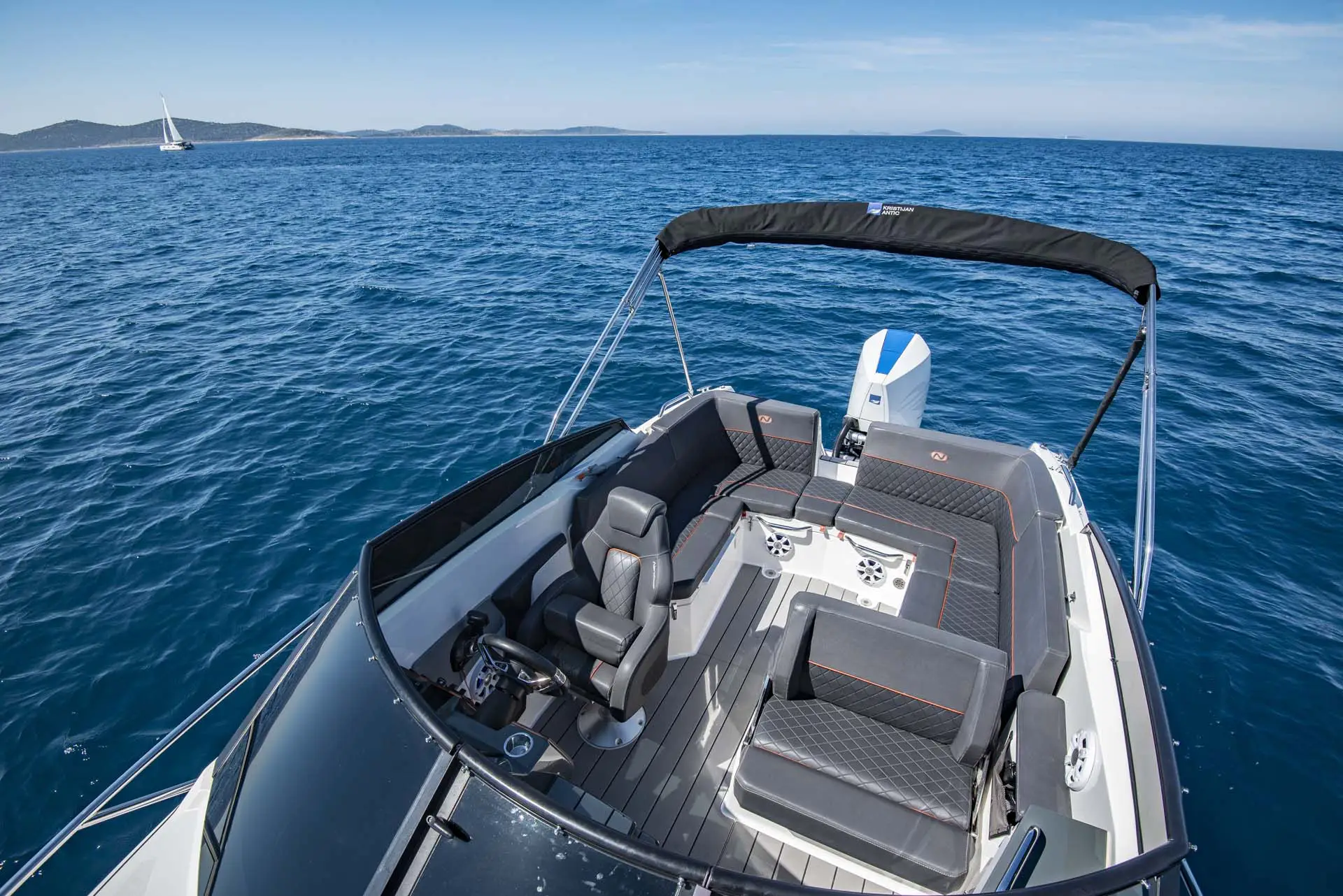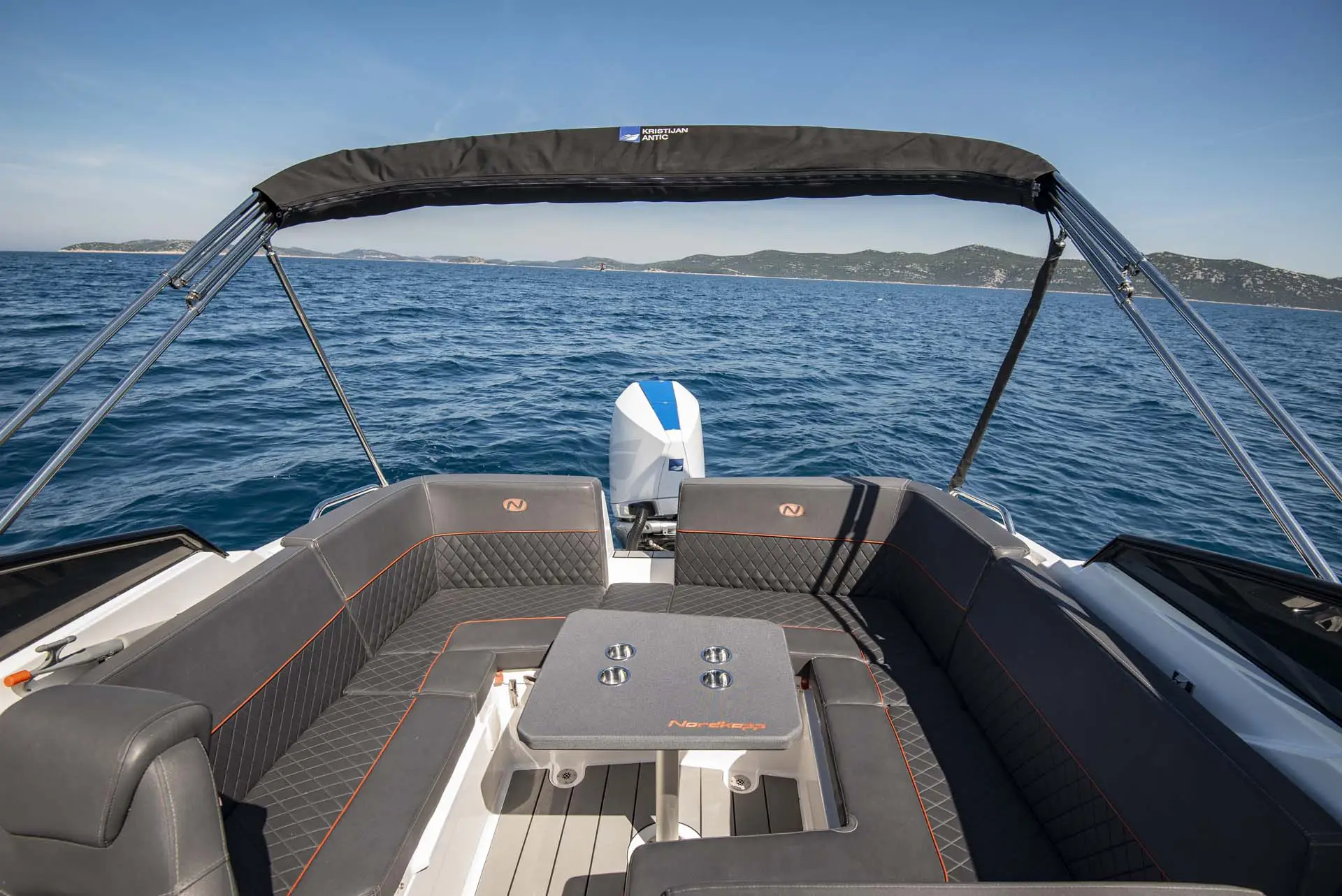 Auch auf den ersten Blick stechen das tiefer gelegte Cockpit und die klaren Linien des Sportbootes ins Auge. Ebenfalls bei etwas unruhigerer See sorgt die Nordkapp K7 für Sicherheit und ruhiges Fahrvergnügen.