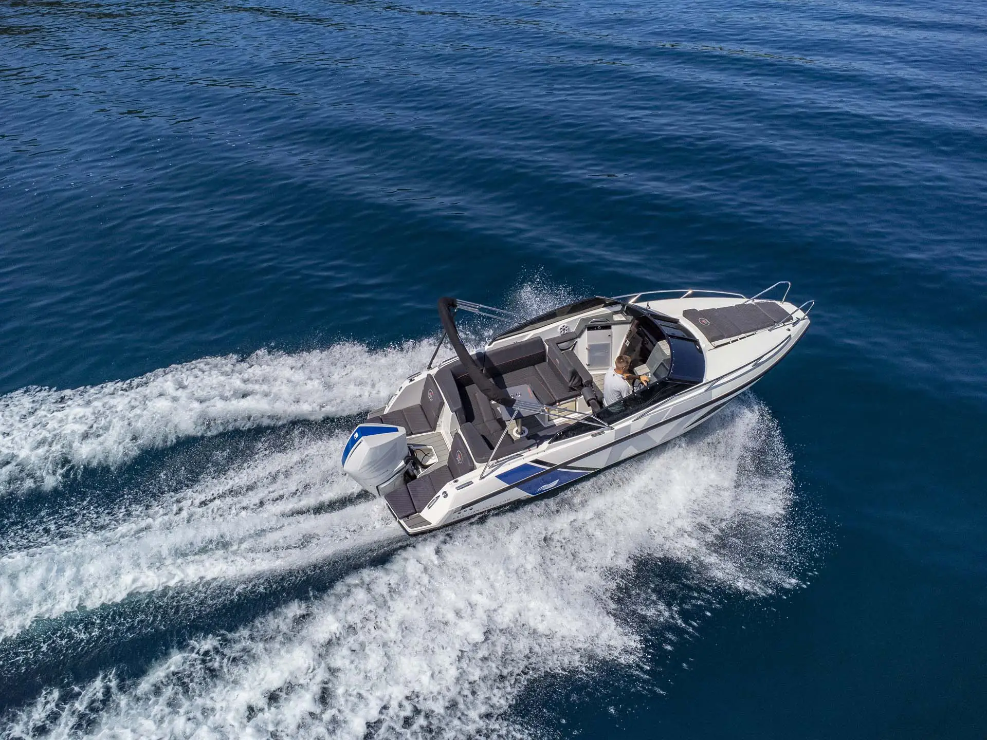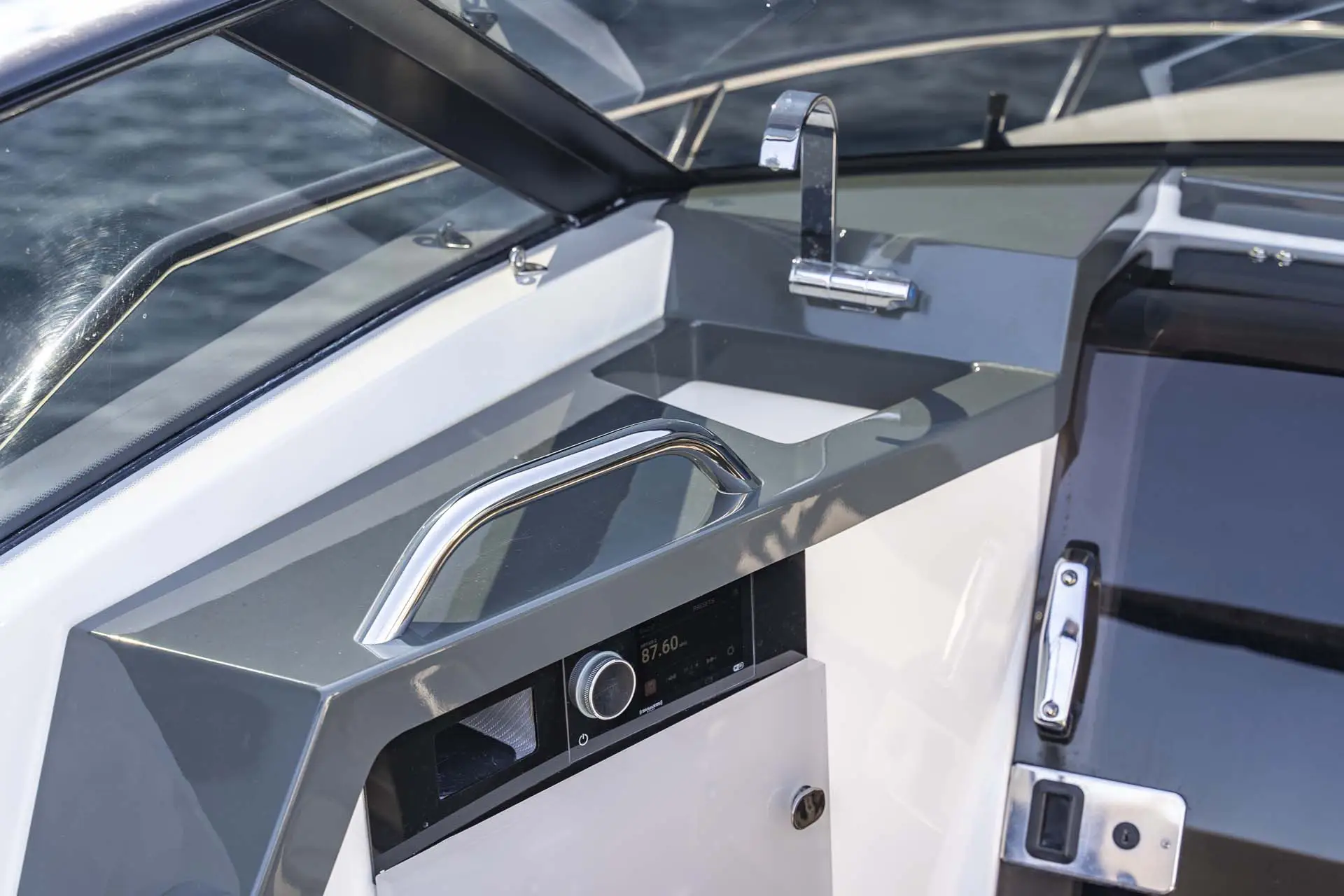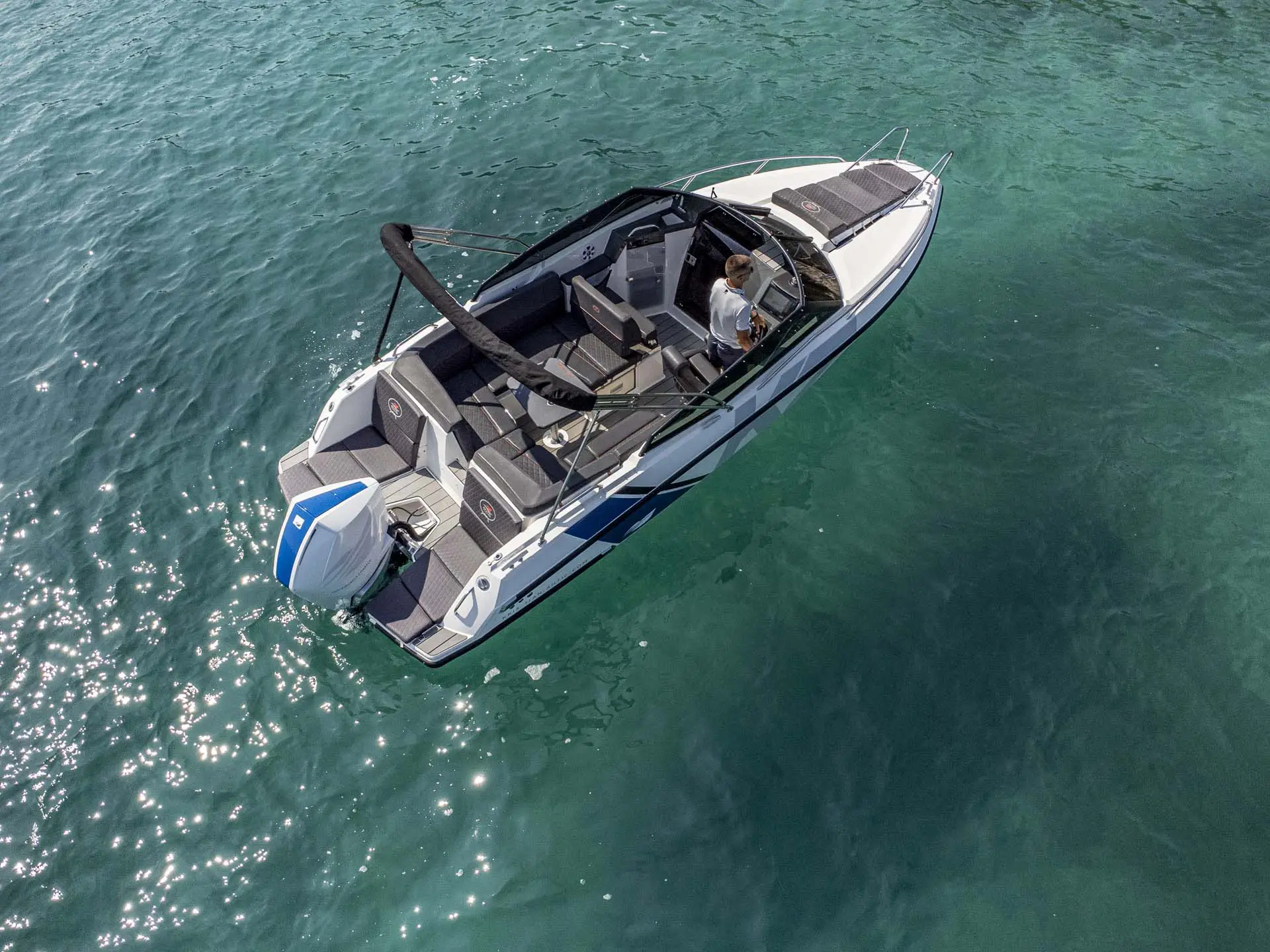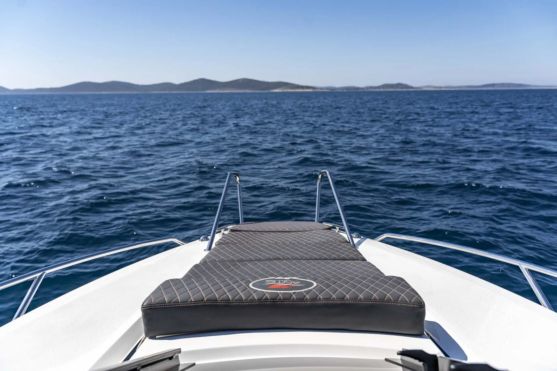 Bugstrahlruder, Solarpanel, Ankerwinde, Vollautomatisches Trimm-System + Aktiv Motor Trimm, digitales VR-Cockpit, Kühlschrank, Toilette, XXL Sonnenverdeck + zusätzliche Beschattung, Bug & Heck Sonnenpolster, Süßwasser Dusche