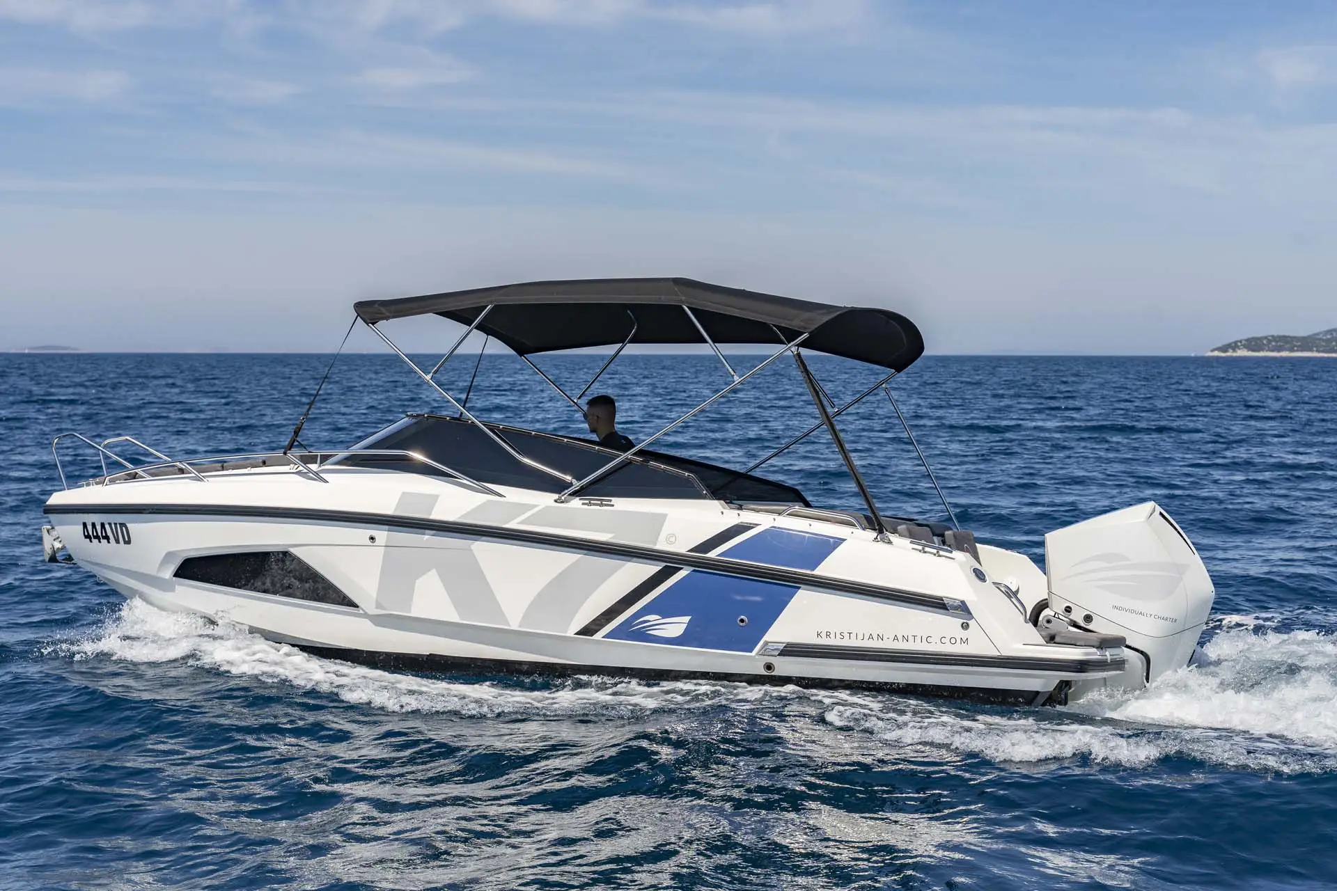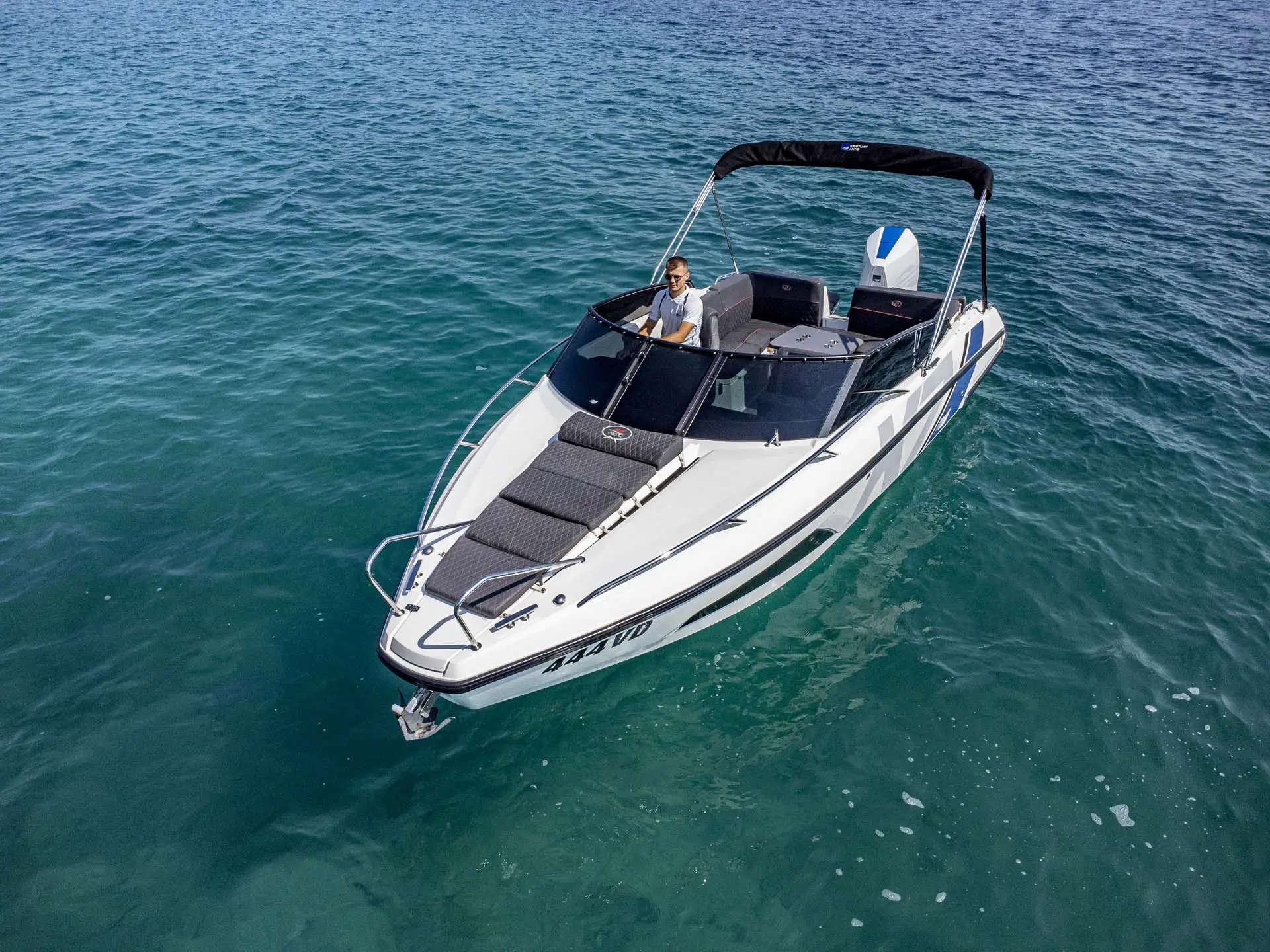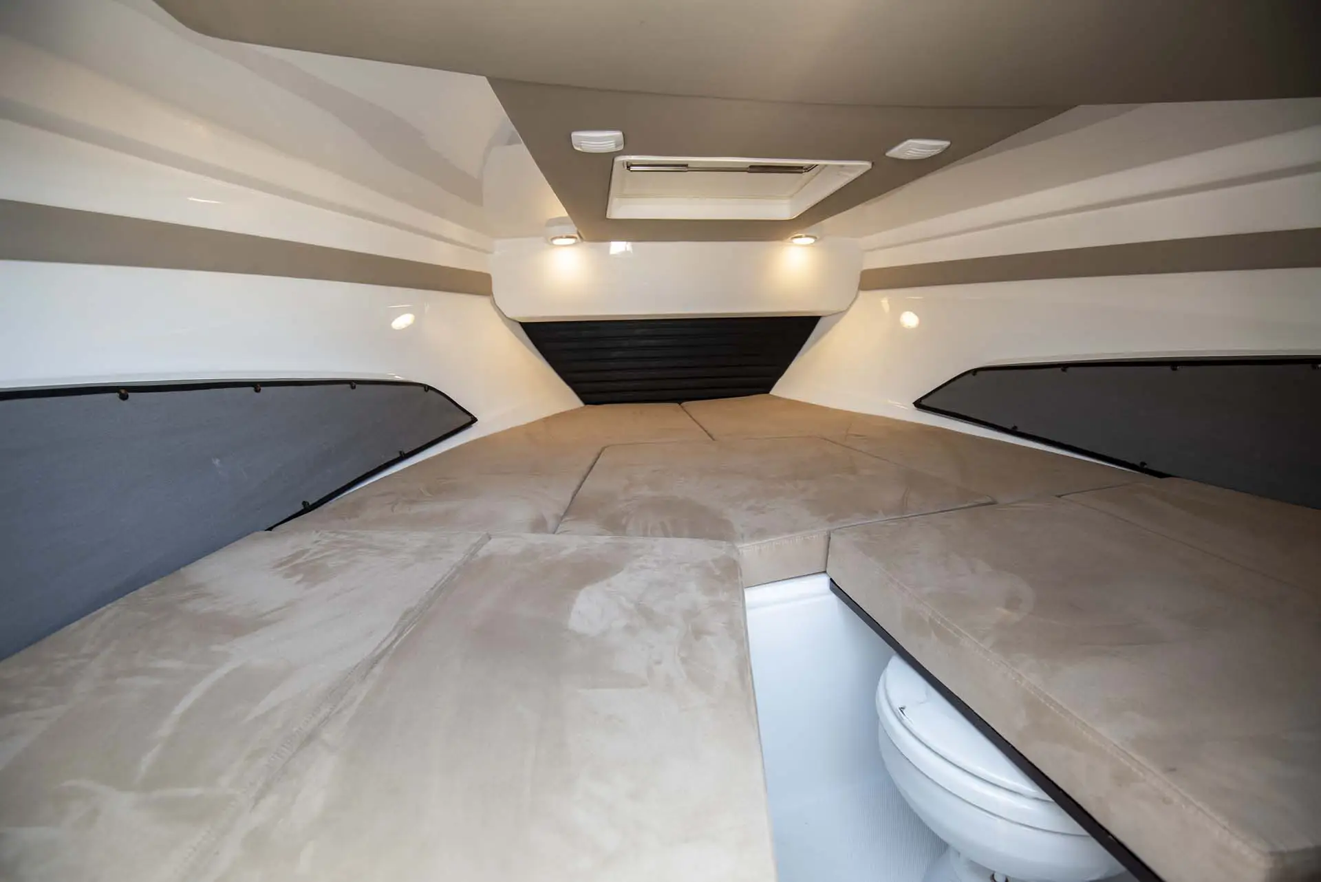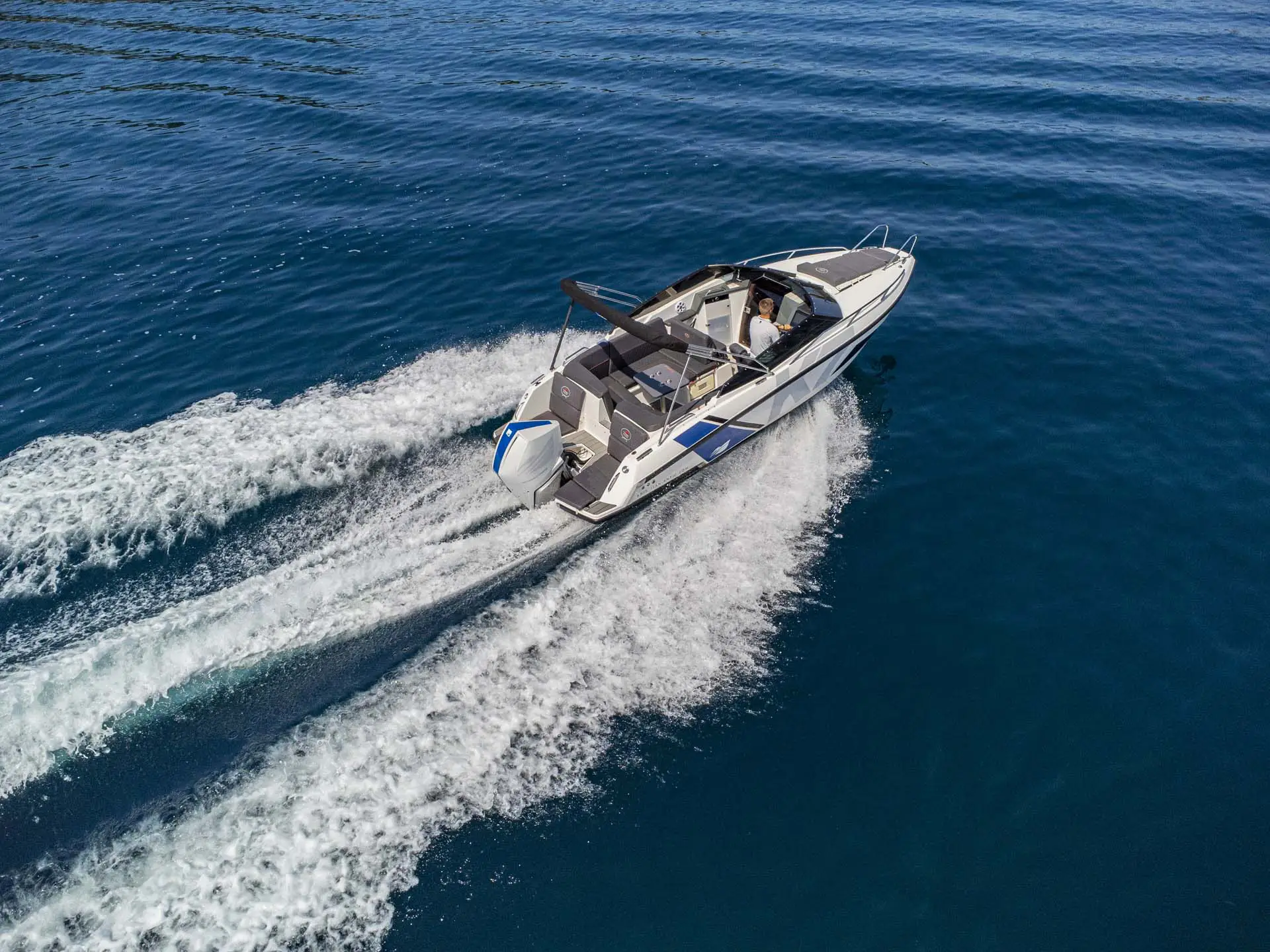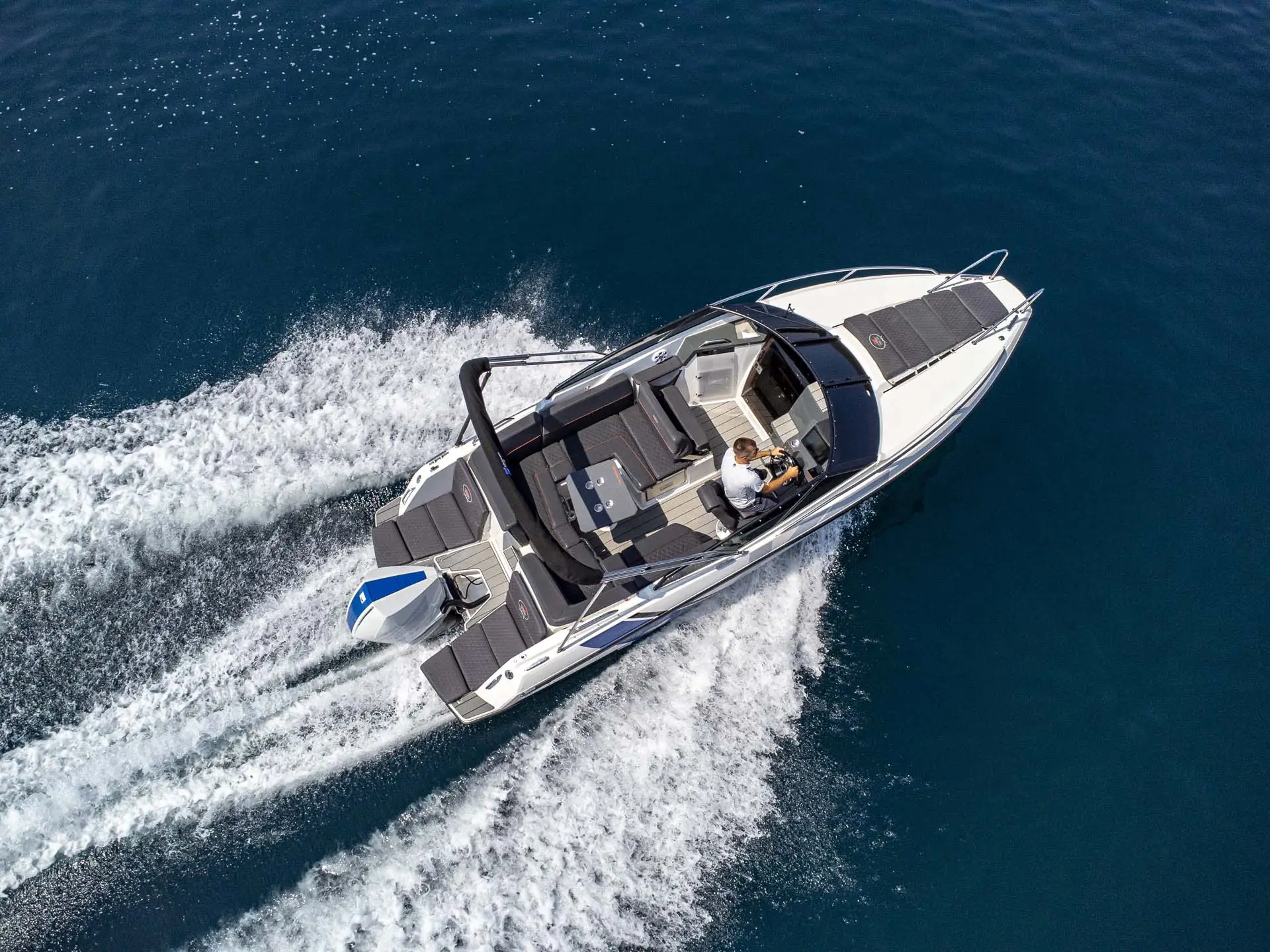 Bugstrahlruder, Solarpanel, Ankerwinde, Vollautomatisches Trimm-System + Aktiv Motor Trimm, digitales VR-Cockpit, Kühlschrank, Toilette, XXL Sonnenverdeck + zusätzliche Beschattung, Bug & Heck Sonnenpolster, Süßwasser Dusche