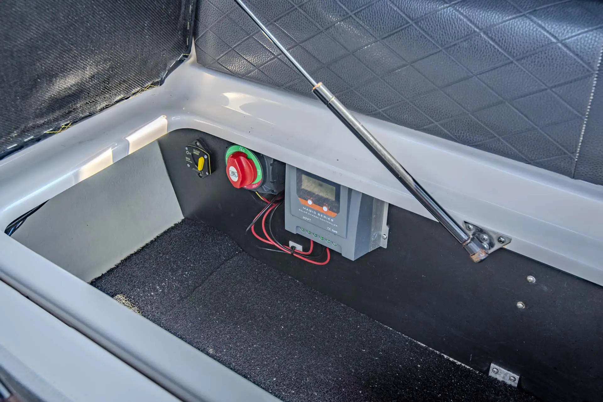 Anker mit Kette 3m + 30m. leine, Mercury ACTIV TRIMM - GPS basierende Motor Trimm System, zusätzliche Stromversorgung durch Photovoltaik Anlage, Hydraulische Lenkung, Druckwasser Anlage, Batterie-Hauptschalter, 2 Batterien Service + Motor