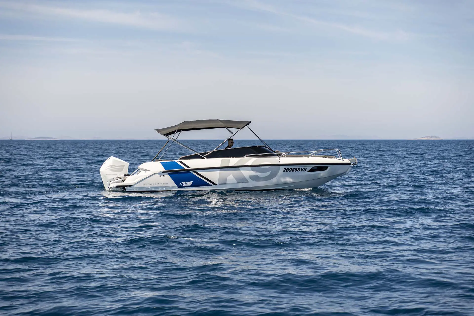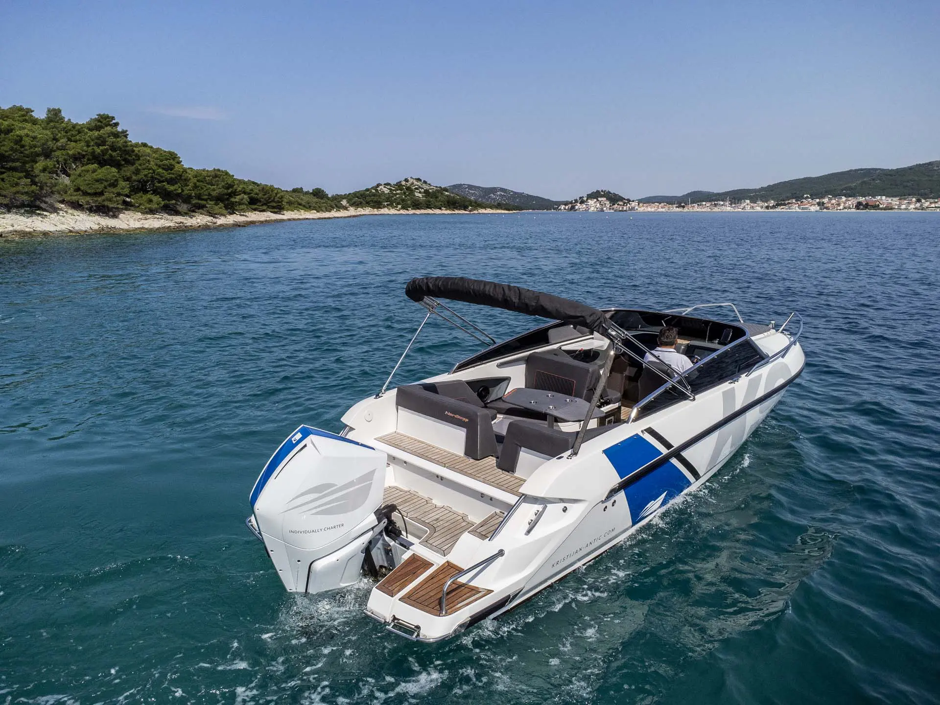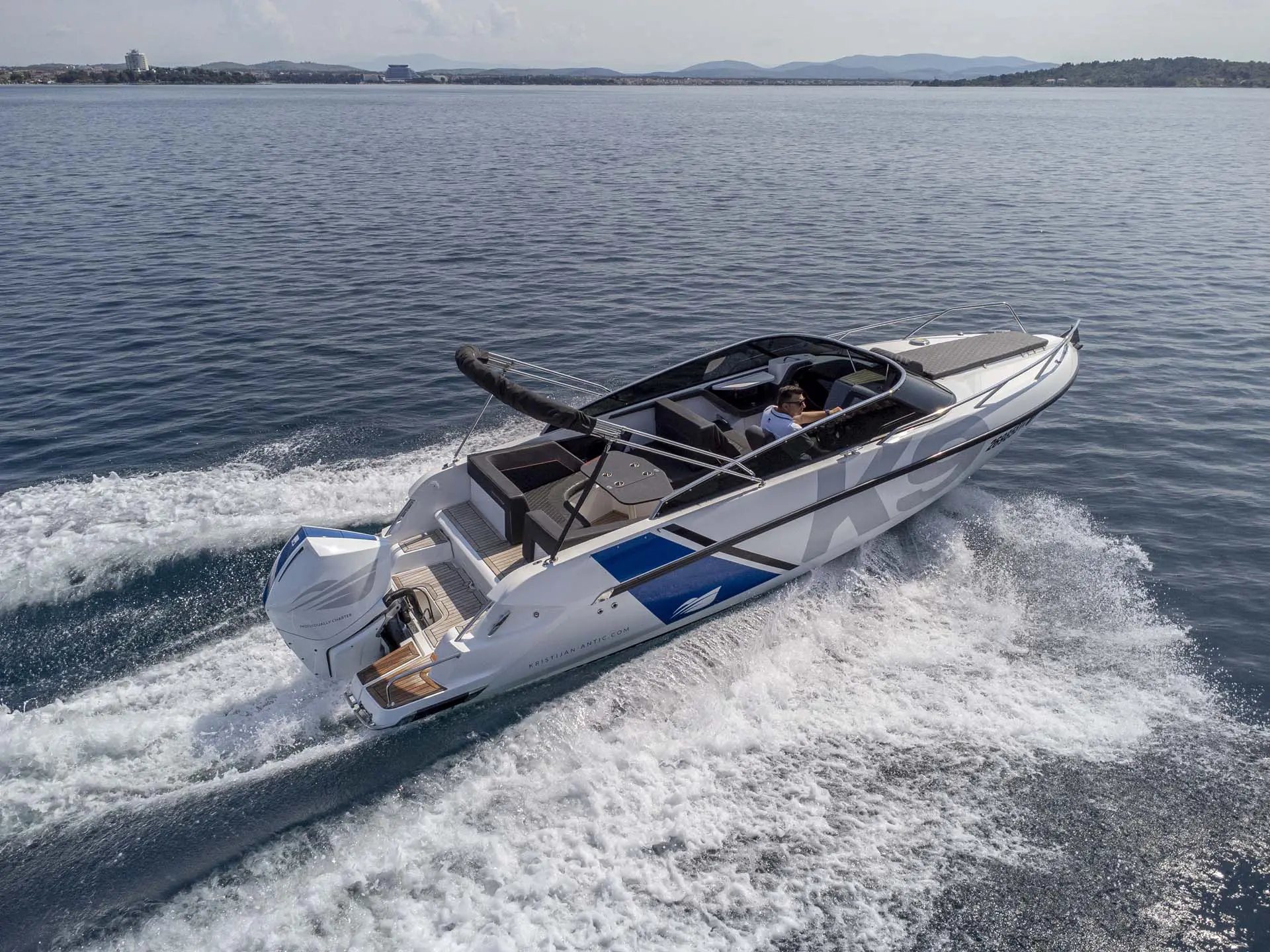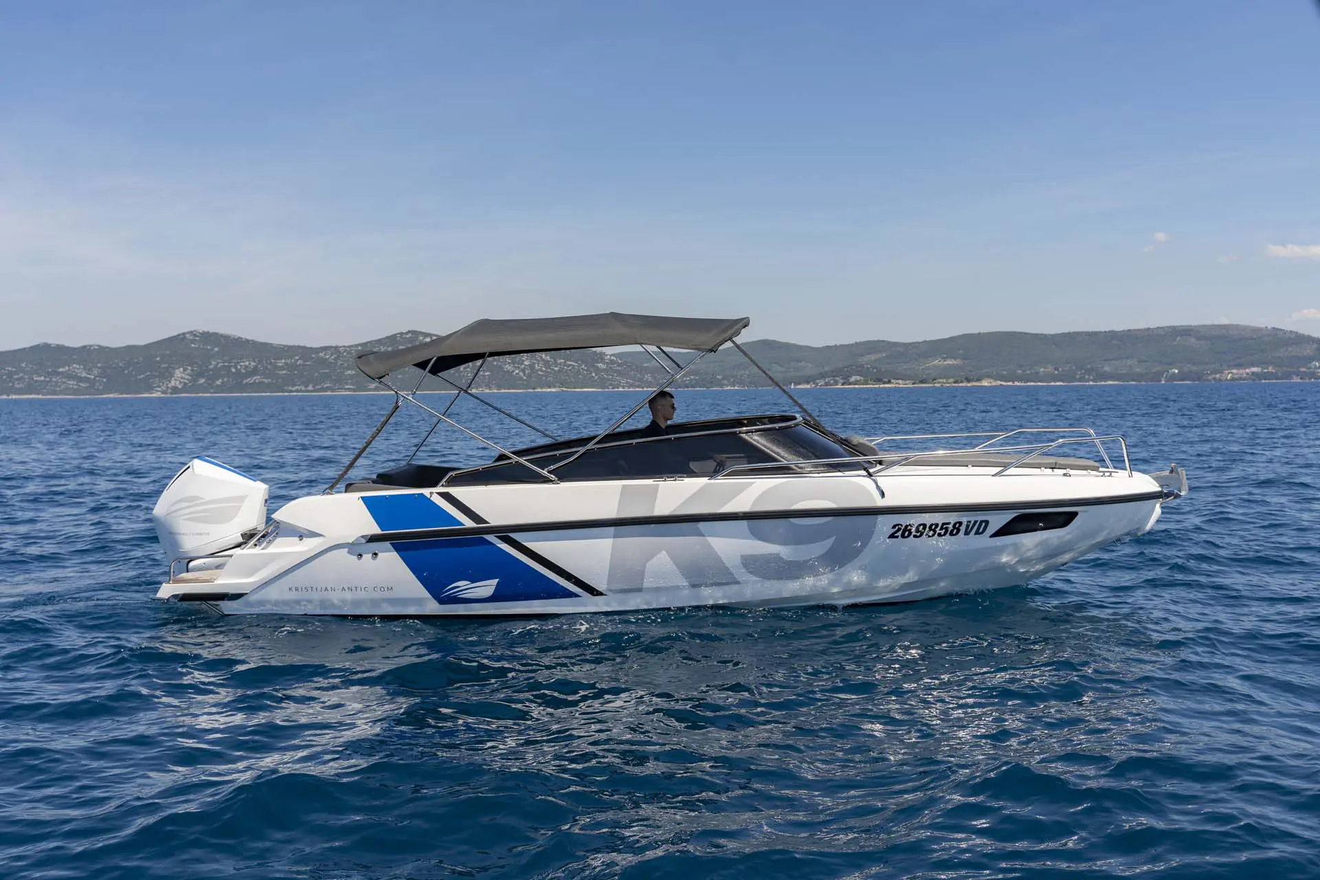 Schon „von der Stange“ ist dieses Boot allerhöchste Klasse, doch damit nicht genug: Tuning by Kristijan Antic bedeutet höchsten Komfort für Charterkunden! Ein größeres Bimini Verdeck (Sonnendach) und der neu entwickelte Mercury V8 mit 300 PS, der von Kristijan Antic noch optimiert wurde, sind nur zwei der zahlreichen Modifikationen.