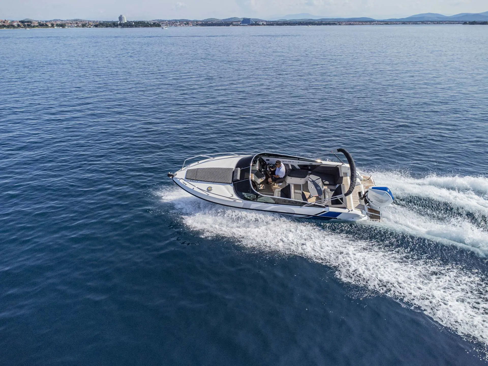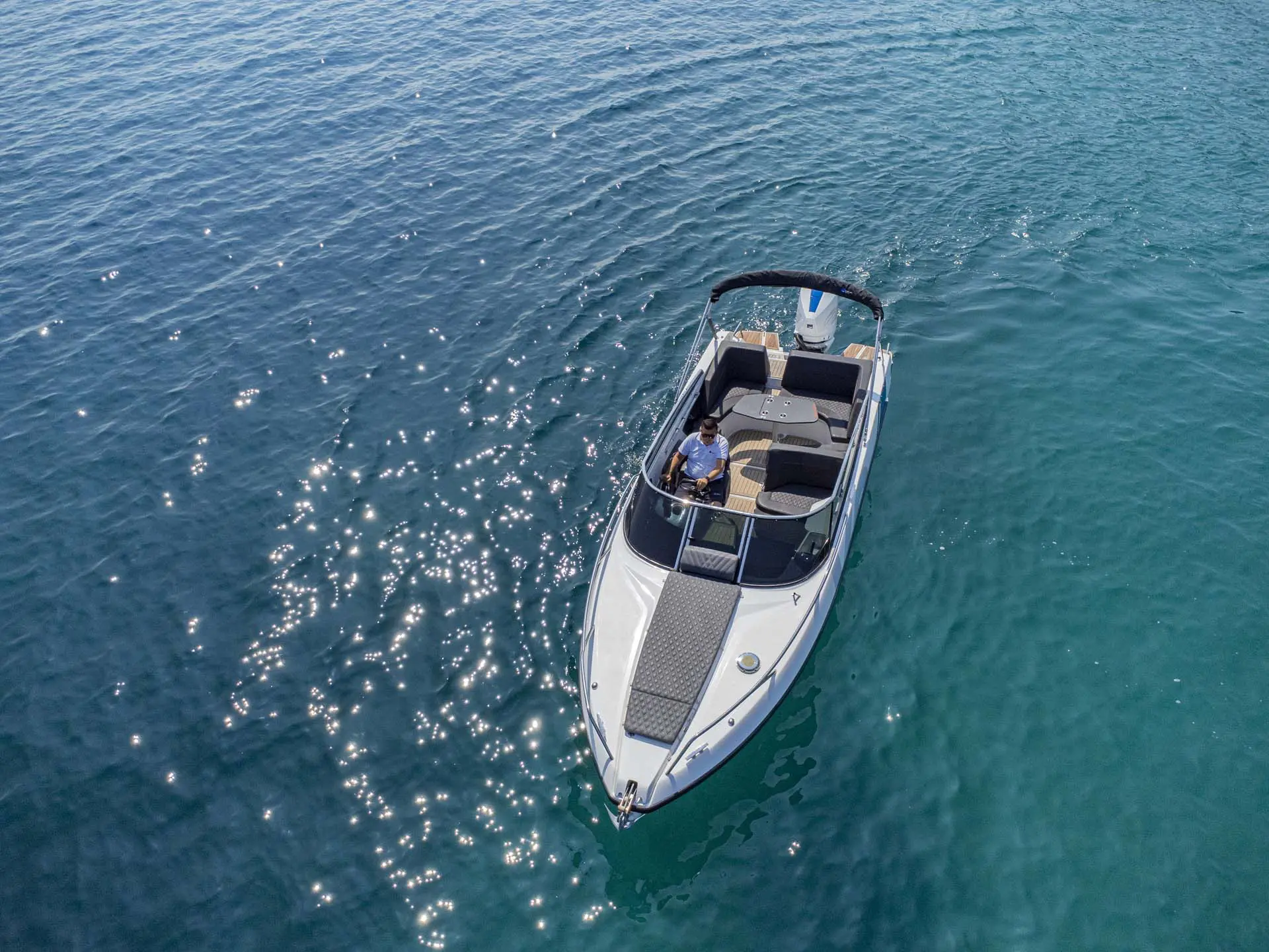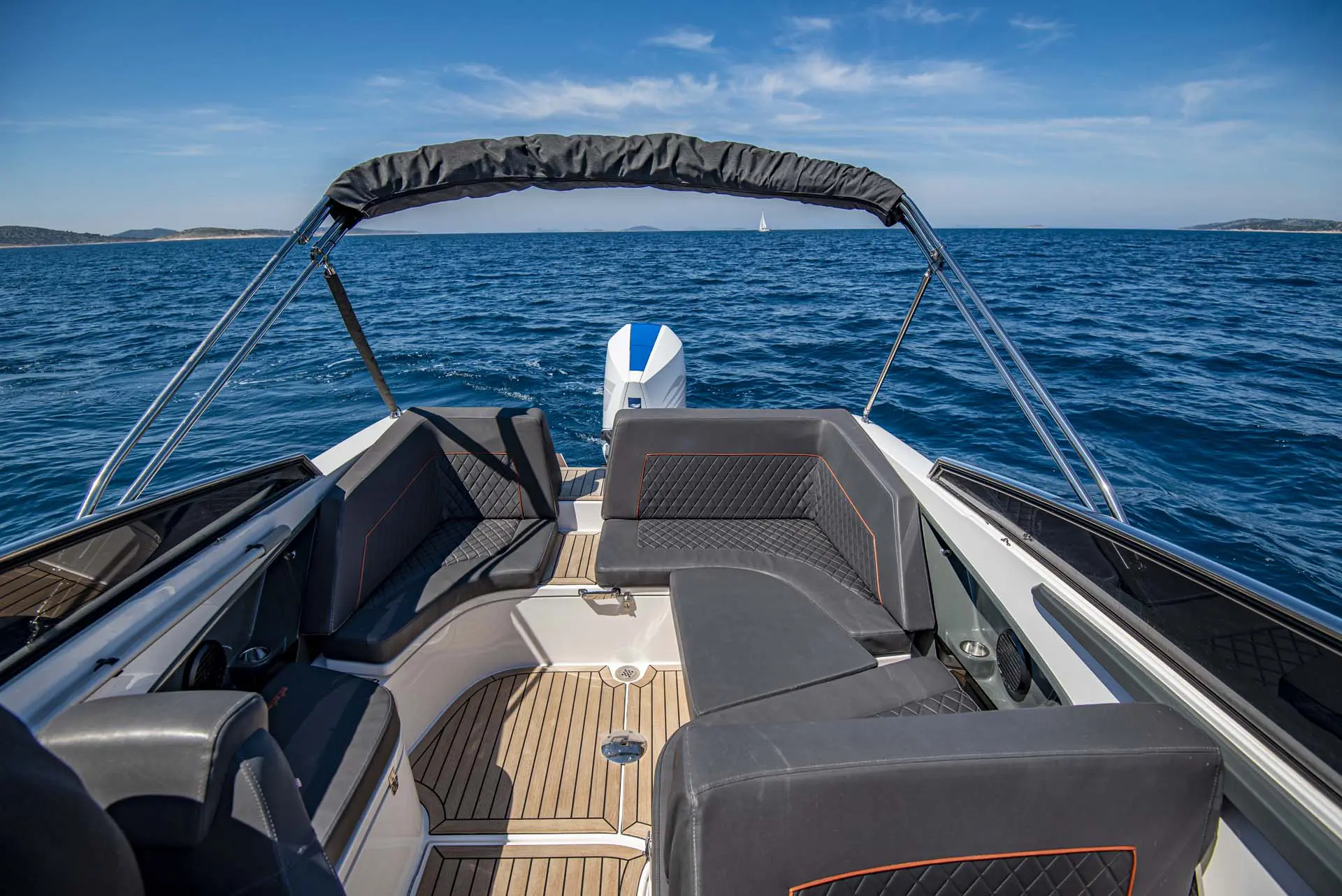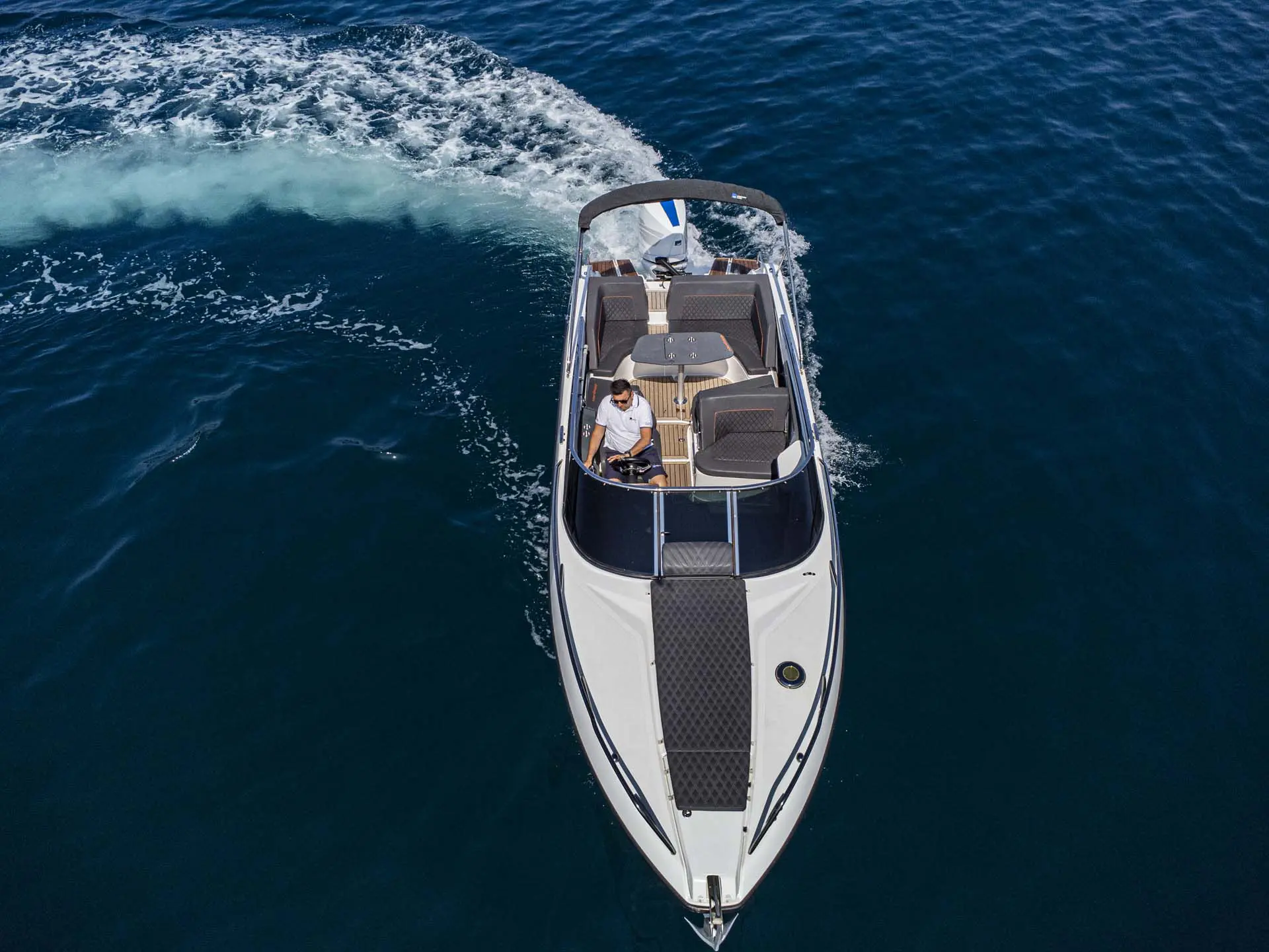 Schon „von der Stange“ ist dieses Boot allerhöchste Klasse, doch damit nicht genug: Tuning by Kristijan Antic bedeutet höchsten Komfort für Charterkunden! Ein größeres Bimini Verdeck (Sonnendach) und der neu entwickelte Mercury V8 mit 300 PS, der von Kristijan Antic noch optimiert wurde, sind nur zwei der zahlreichen Modifikationen.