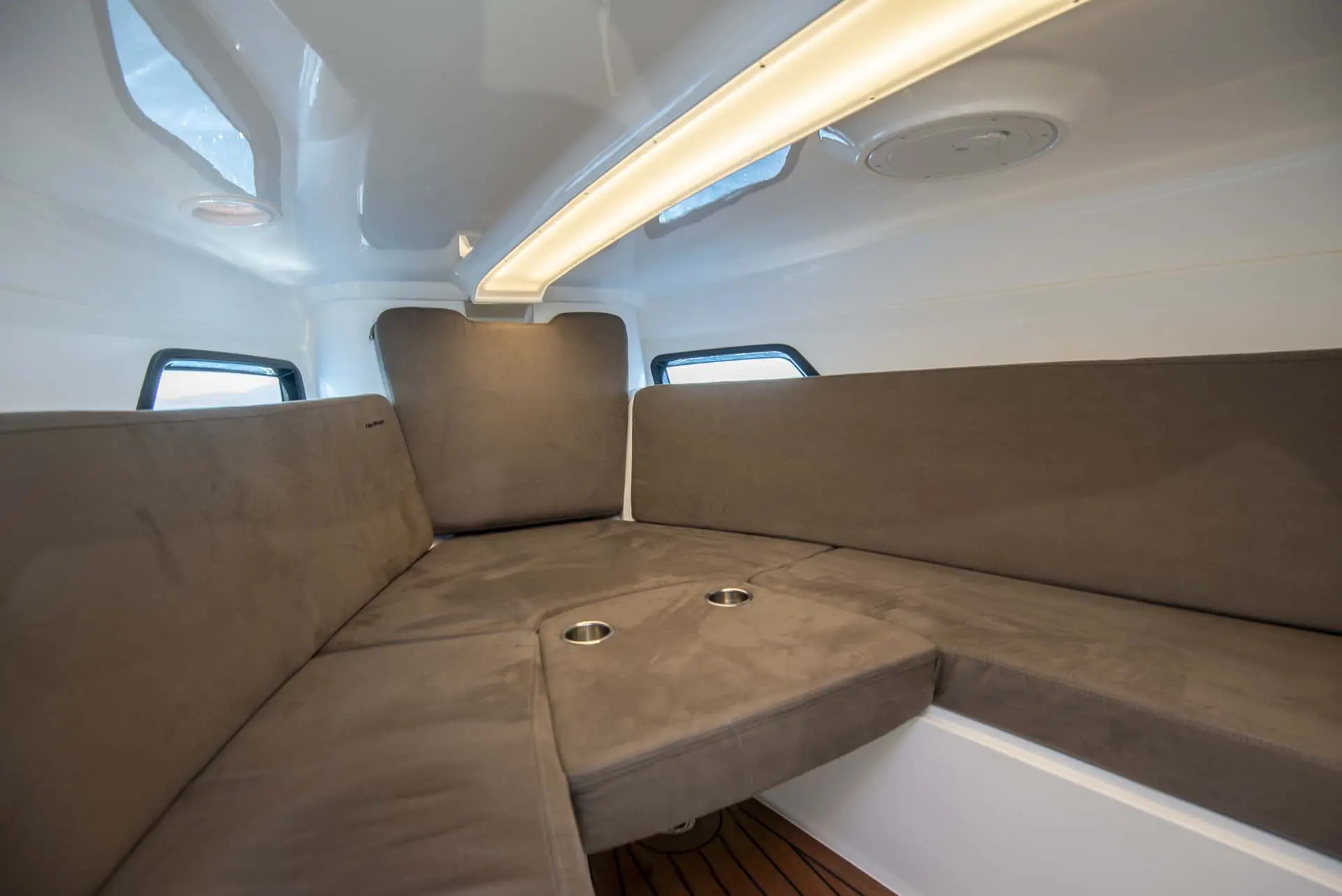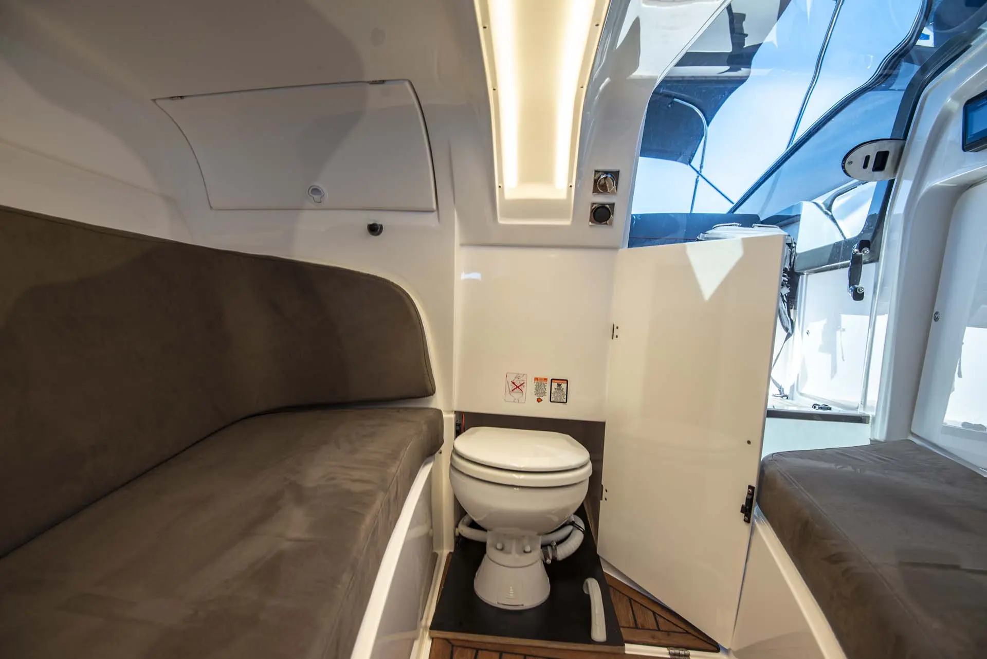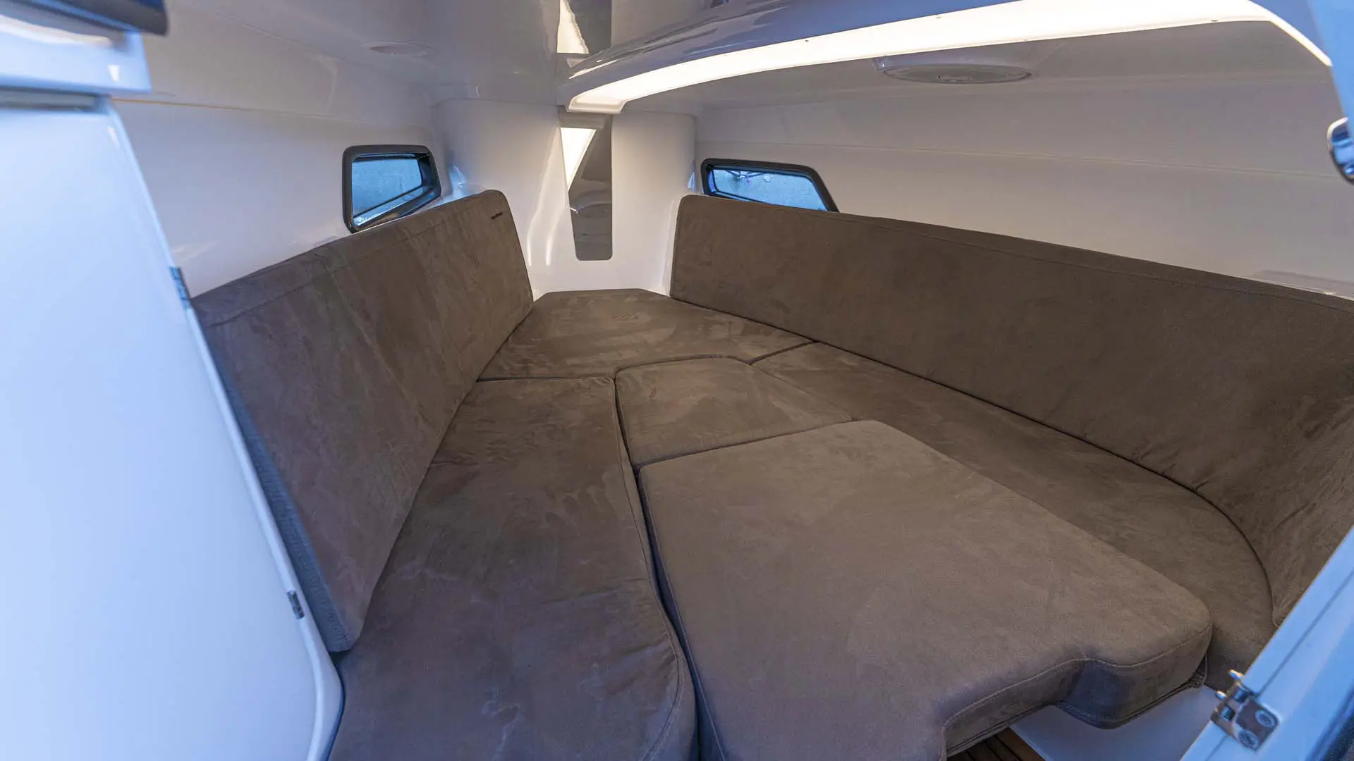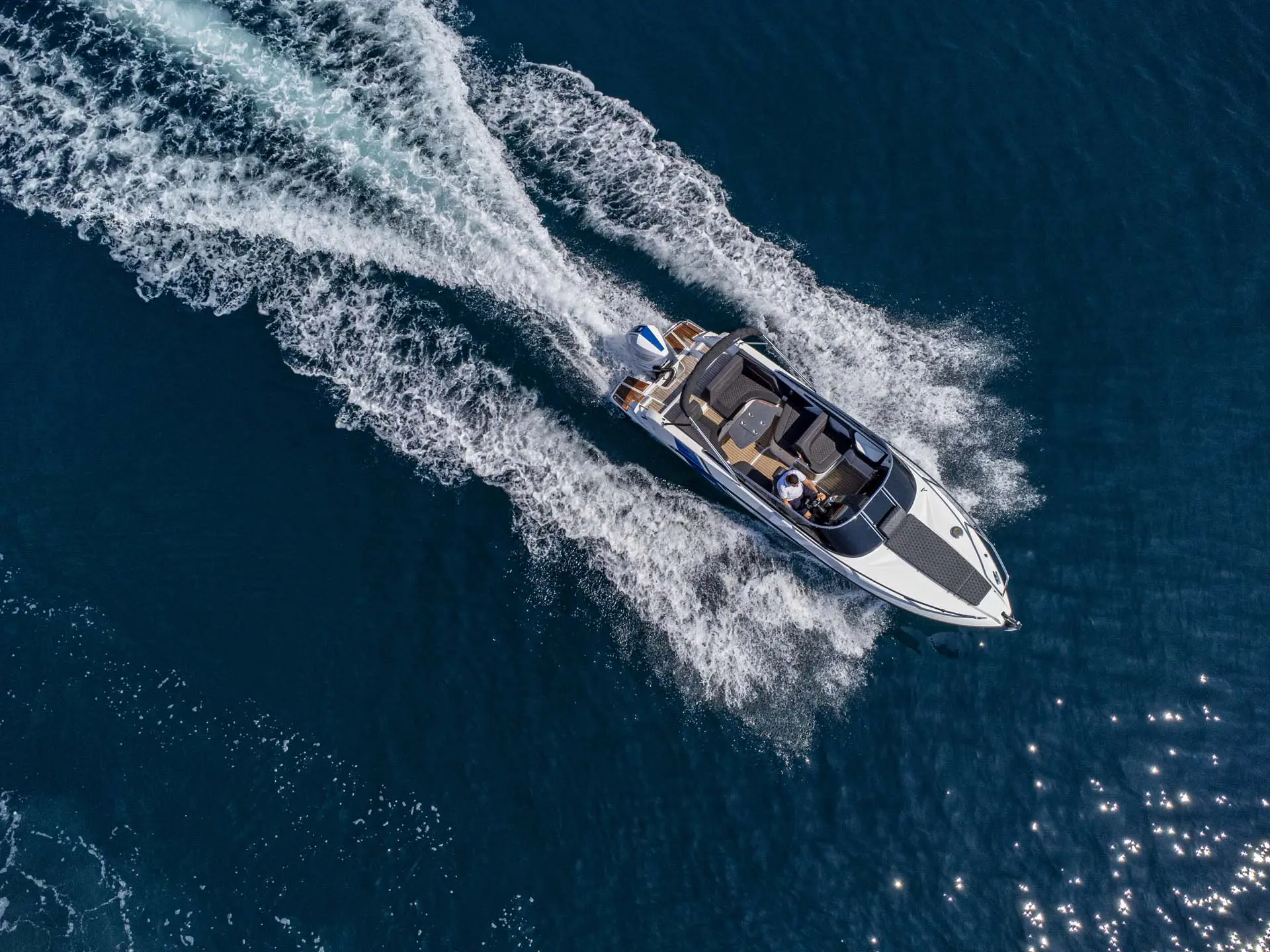 Bugstrahlruder, Solarpanel, Ankerwinde, Vollautomatisches Trimm-System + Aktiv Motor Trimm, digitales VR-Cockpit, Kühlschrank, Toilette, XXL Sonnenverdeck + zusätzliche Beschattung, Bug Sonnenpolster, Süßwasser Dusche