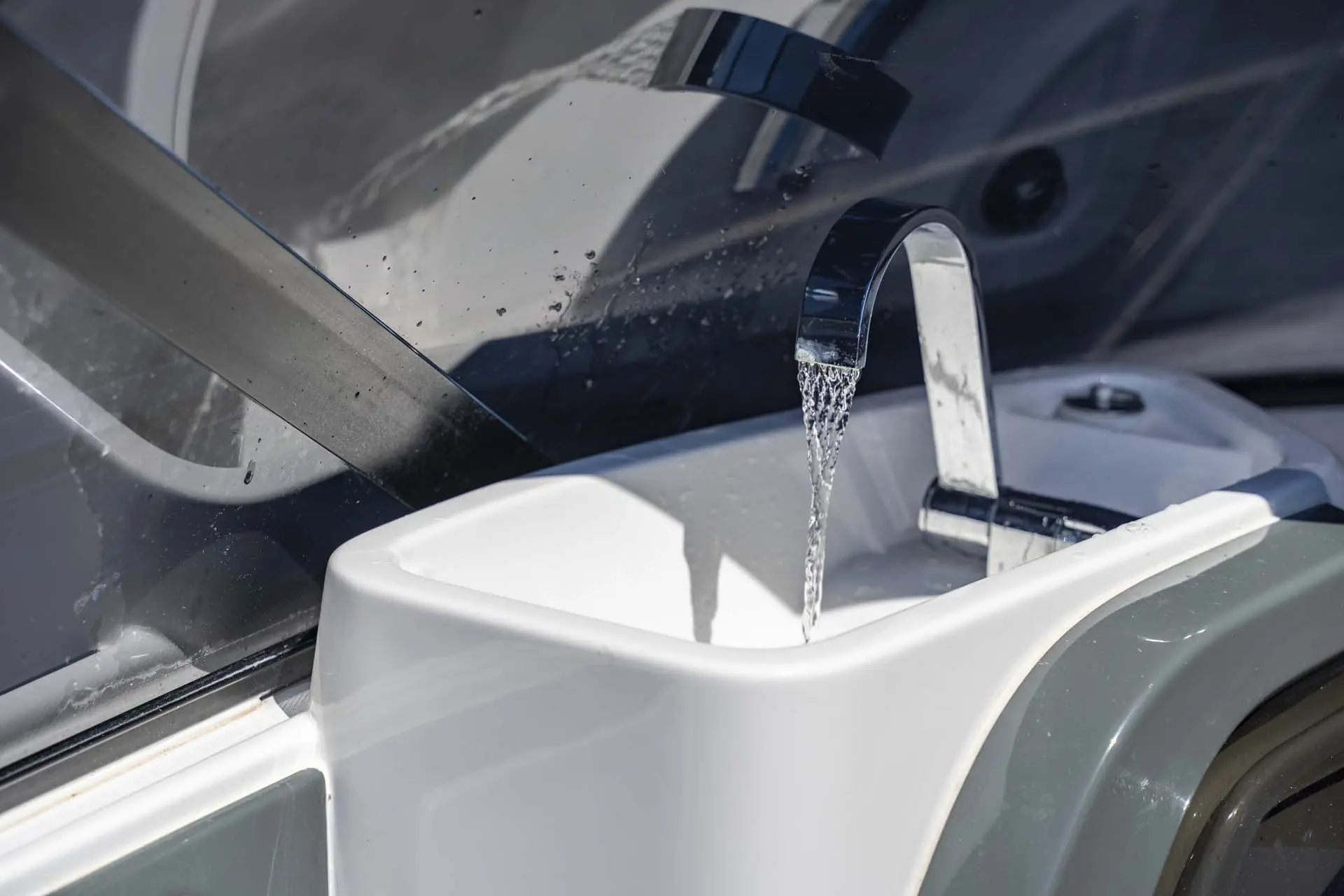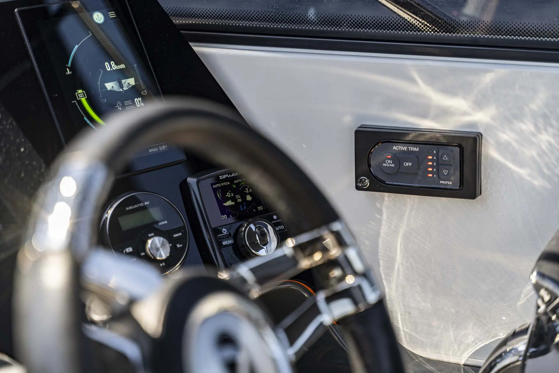 Elektrische Ankerwinde mit Ankerkette 30m, Bugstrahlruder - Bow thruster, ZIPWAKE – dynamische Trimm-Steuerungssystem, Mercury ACTIV TRIMM - GPS basierende Motor Trimmungssystem, zusätzliche Stromversorgung durch Photovoltaik Anlage, Elektrohydraulische Lenkung, Digitales Gas- und Schaltsystem DTS, Druckwasser Anlage, Batterie-Hauptschalter, 2 Batterien Service + Motor