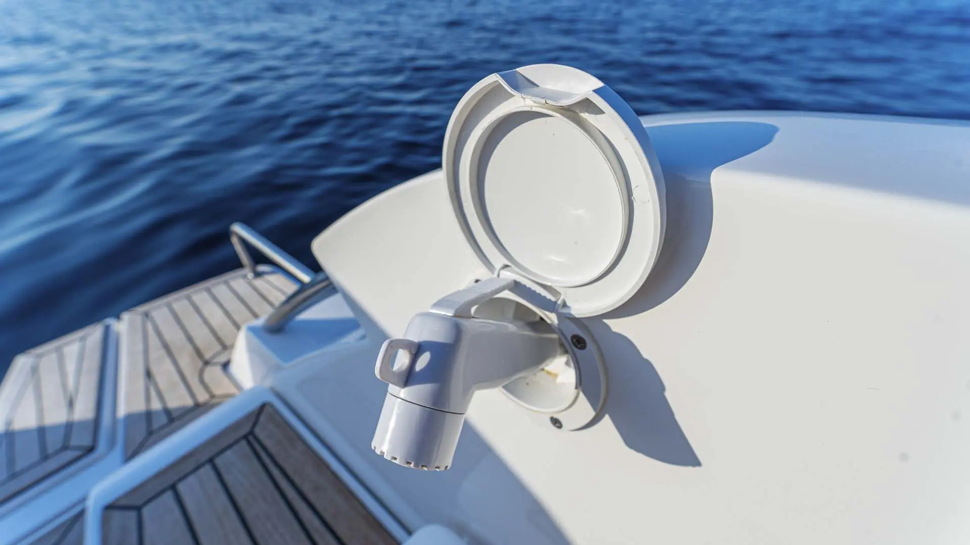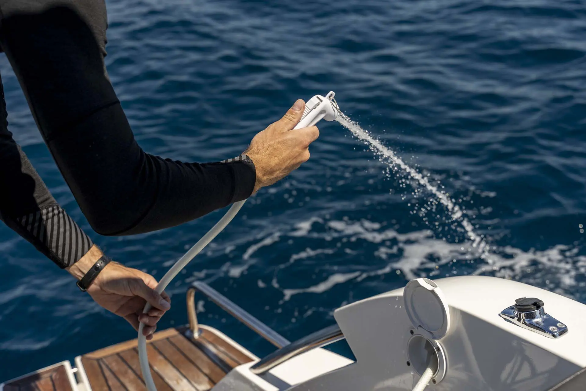 Süßwasser Heckdusche, 8 Fender, Bootshacken, Badeleiter, Sonnenpolster am Bug