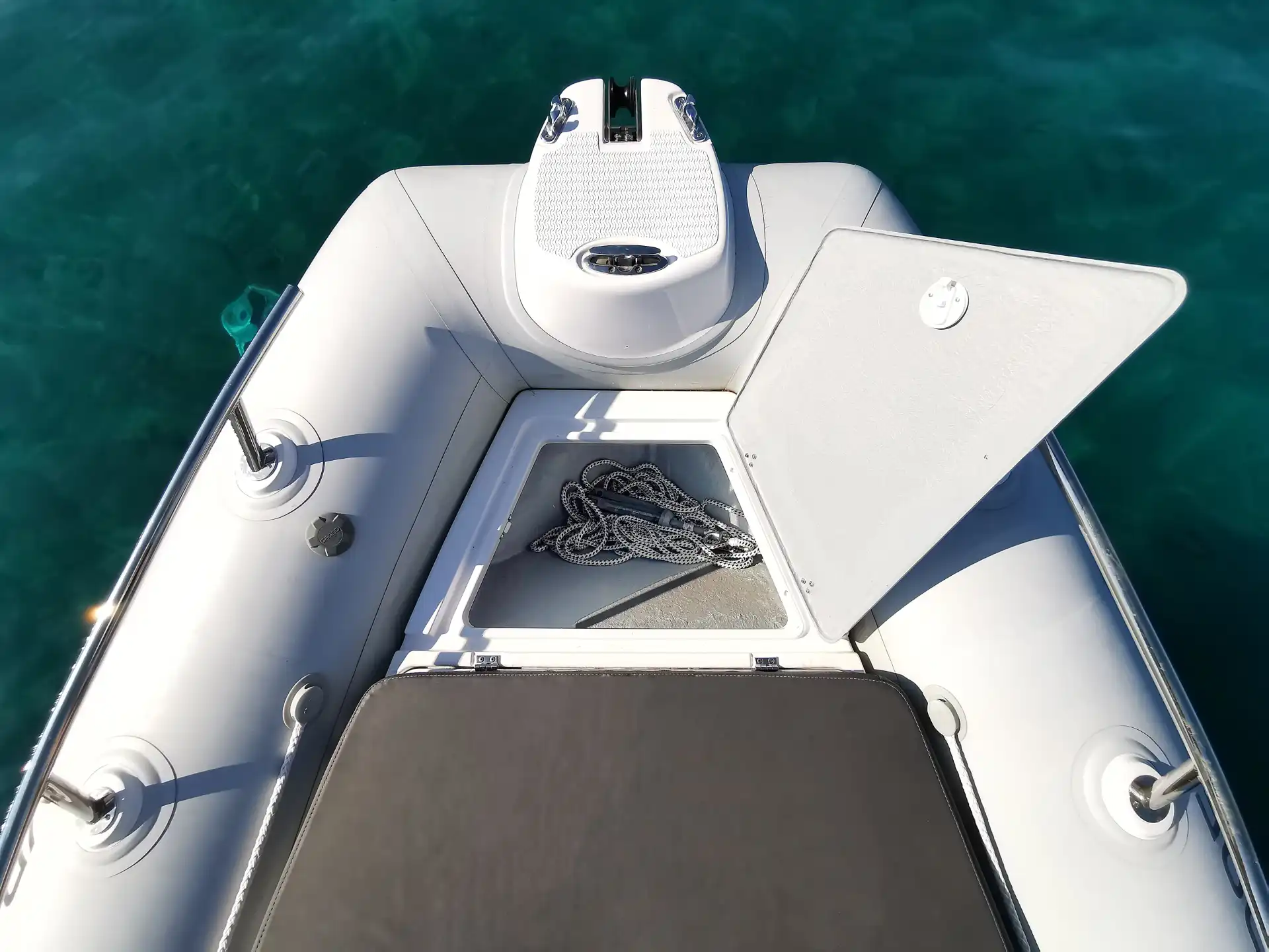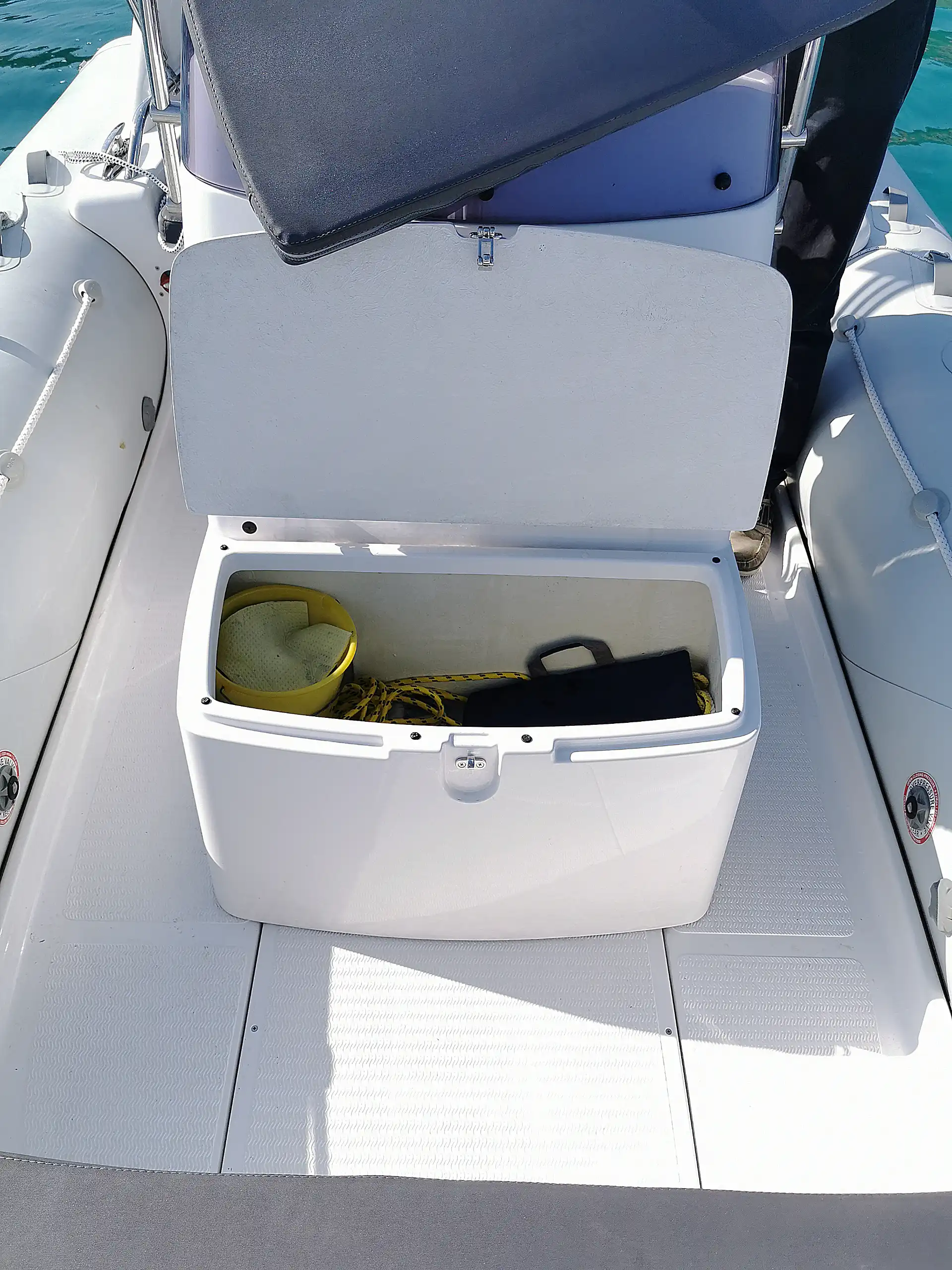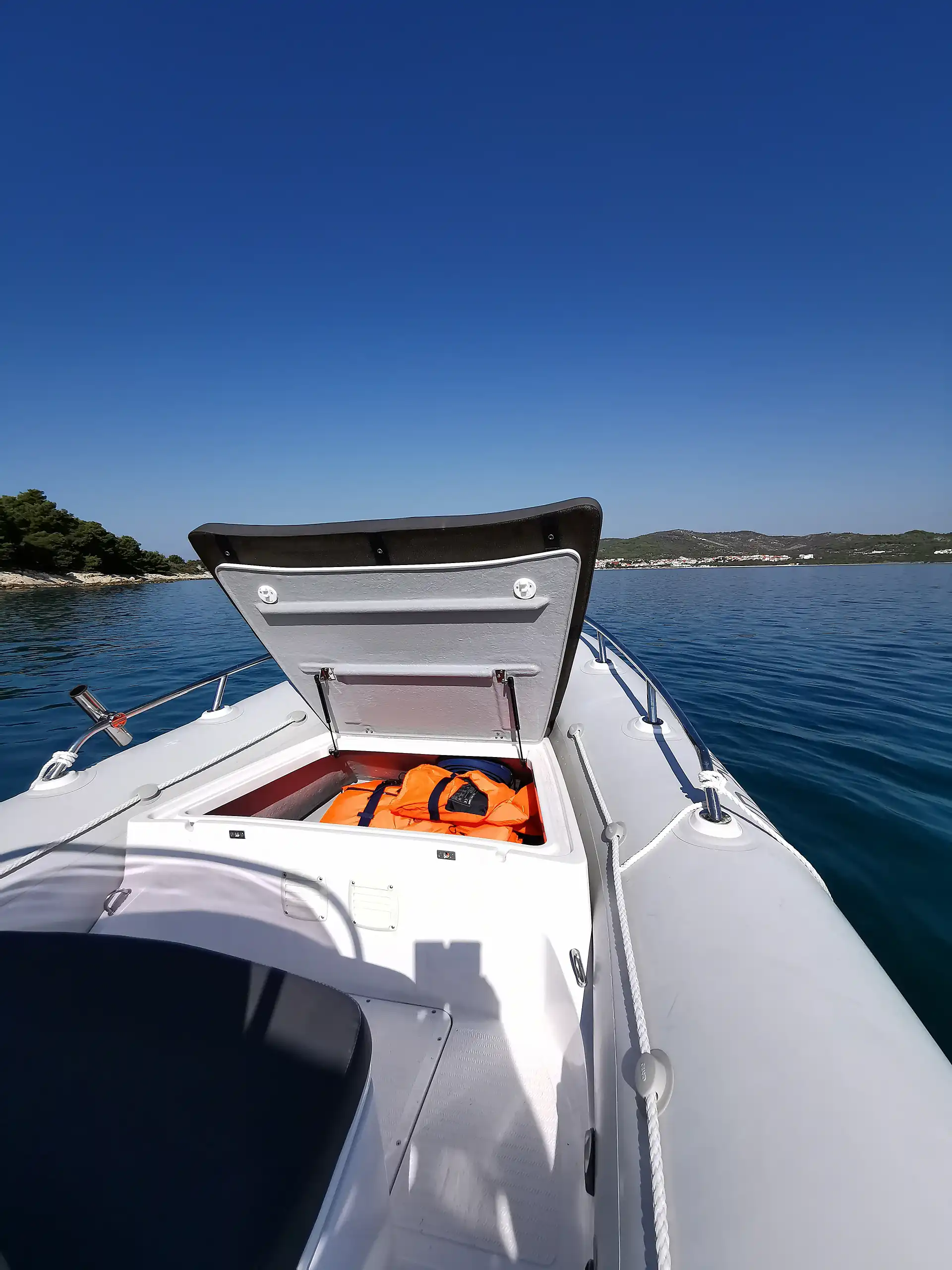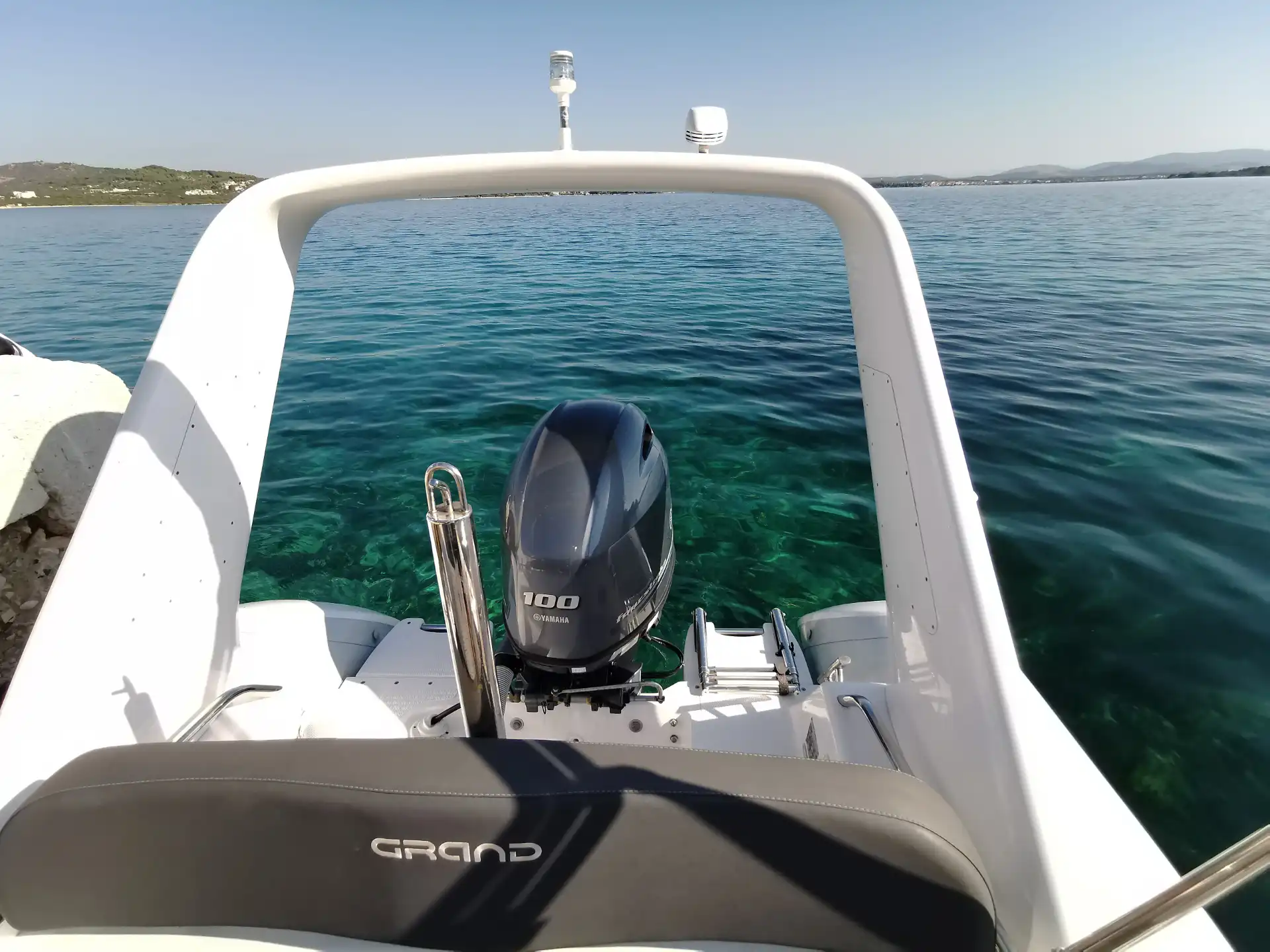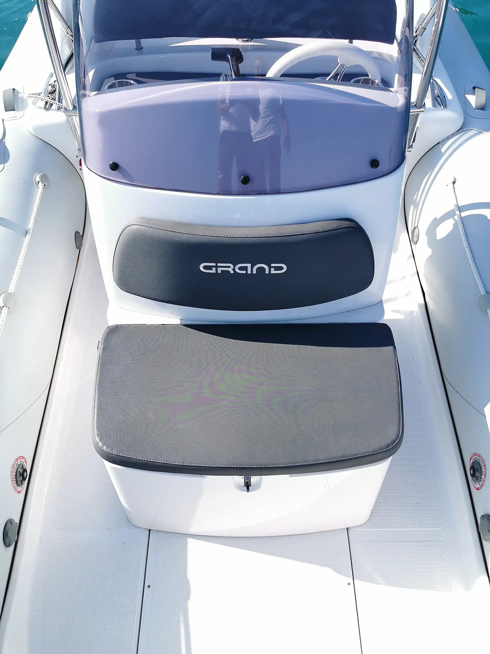 Der bewährte und erstklassige HSH – Rumpf verhilft vor allem zu Reisegeschwindigkeiten jenseits von 30 Knoten. Unsere Grand S550 (Rent a Boat Tribunj) ist ebenfalls mit einem Einbautank ausgestattet, der ein Fassungsvermögen von 100 Litern aufweist. Das geräumige Cockpit bietet Außerdem für 4 Personen bequeme Sitzplätze in Fahrtrichtung und ebenso genügend Raum um den Komfort an Bord zu garantieren.