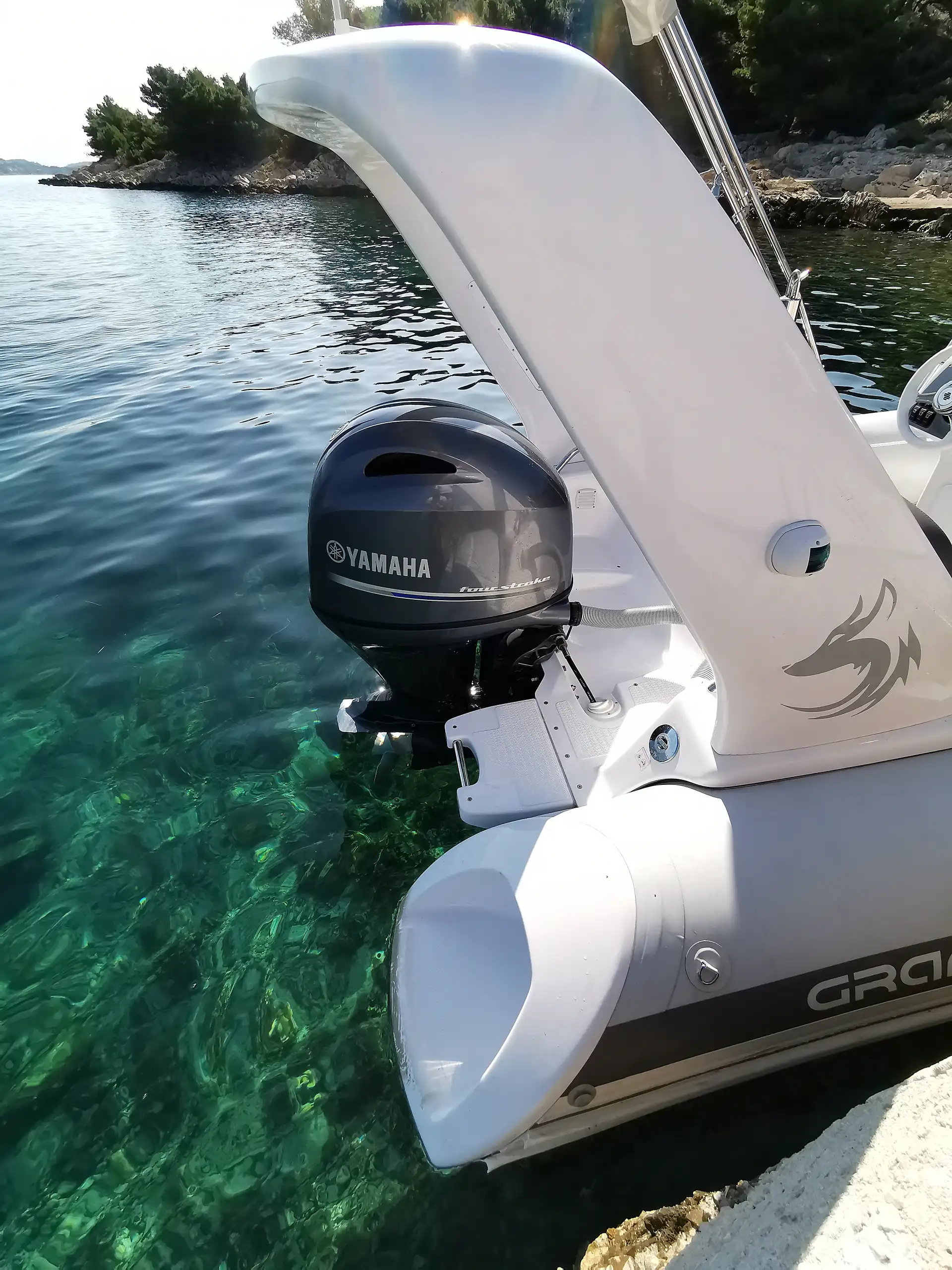 Bootsurlaub mit Rent a Boat Tribunj und der Grand Cruiser Serie, die erlaubt Ihnen auch auf offener See sicher unterwegs zu sein. Darüber hinaus mit ihrer hervorragenden Seetauglichkeit und dem ansprechenden Design sowie der praktischen Raumaufteilung, stellen sie einzigartige Modelle unter den RIBs Festrumpf Schlauchboot dar.